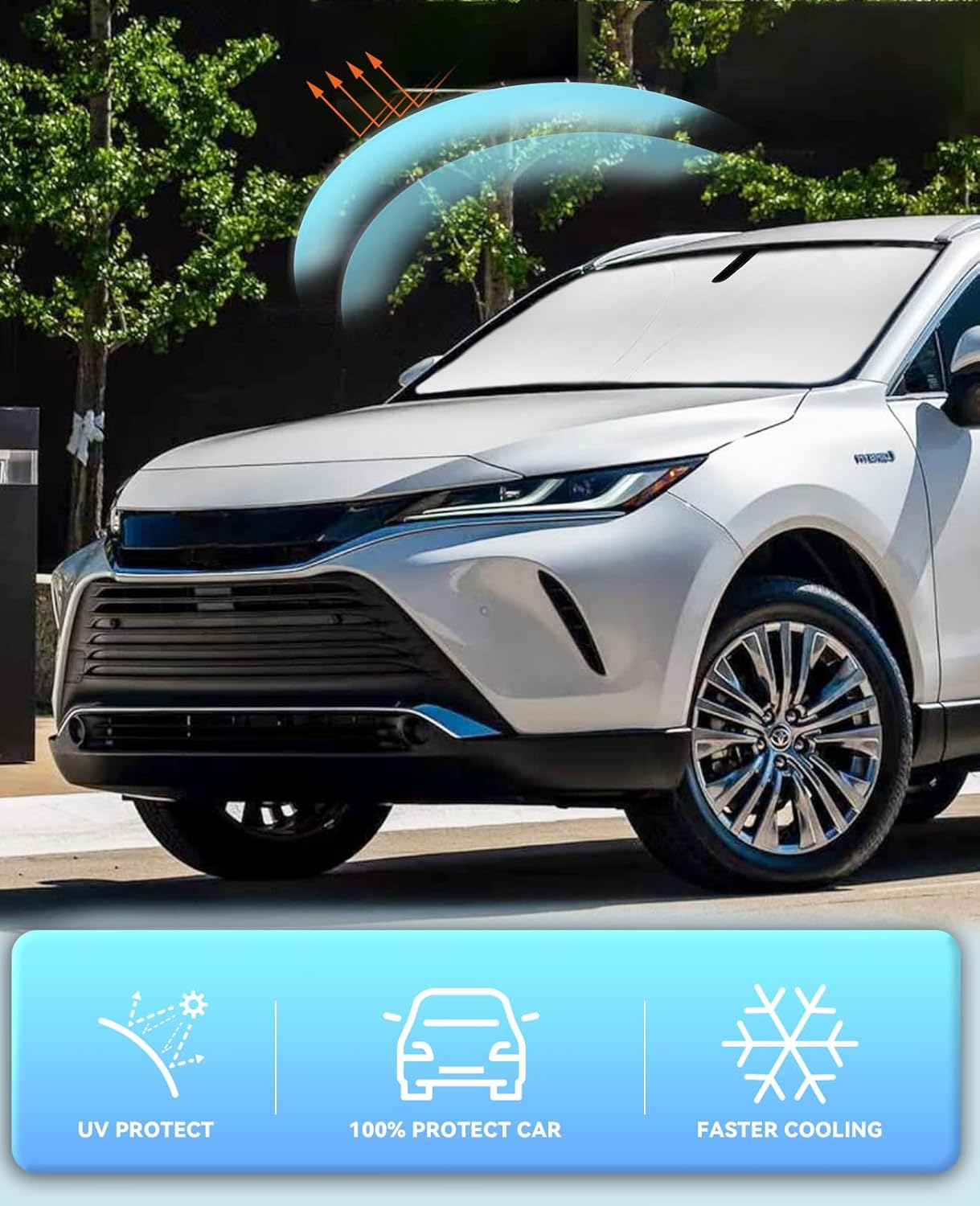 - ăVehicle SpecificăOur Windshield Shade Cover custom fit for 2020 2021 2022 2023 2024 2025 Toyota Venza, LE, XLE, Limited, SUV ,Full covered your windshield,No Gap,100% Perfect fit. The precise fit design and reinforced steel ring are sufficient to allow the sun shade to precisely fit the front window without the need for suction cups to hold it in place, effectively protecting your car from the sun's rays.