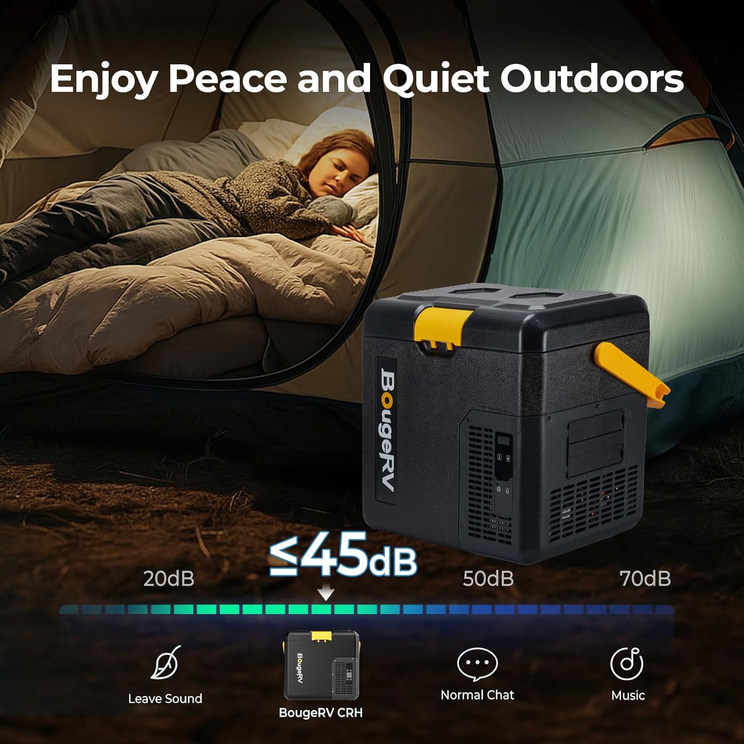 BougeRV CRH 12 Volt Refrigerator, 19QT Car Fridge, Car Refrigerator, 18L Portable Freezer, -4~68℉, 12/24V DC, 110~240V AC, Ideal for 2 People, Road Trips, Truck, Camping (Battery Not Included)