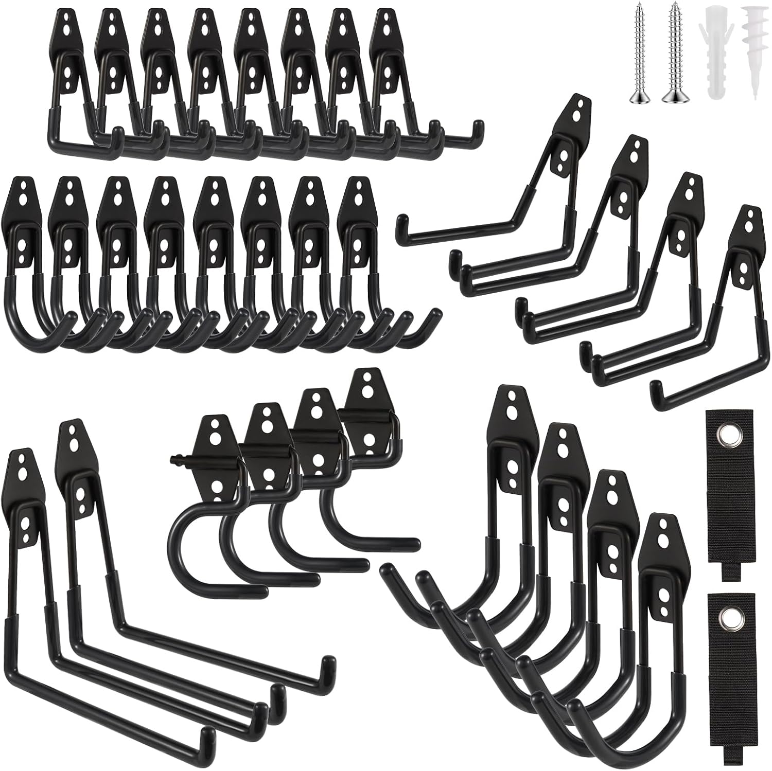 Garage Hook Heavy Duty Wall Storage Hangers, 32 Pack Garage Storage Hooks Steel Tool Black for Ladders, Ropes, Garden Tools