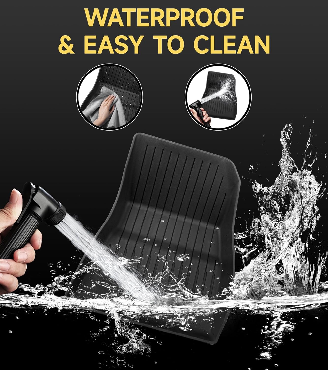 - ăHIGH-END MaterialsăCHIYLE Tesla Floor Mats Model Y 2026 is made of high-quality TPE material, which is more odorless than traditional TPE. It's also more durable, light-resistant, heat-resistant, and waterproof, can be easily washed with water and dry within minutes, making them very convenient.