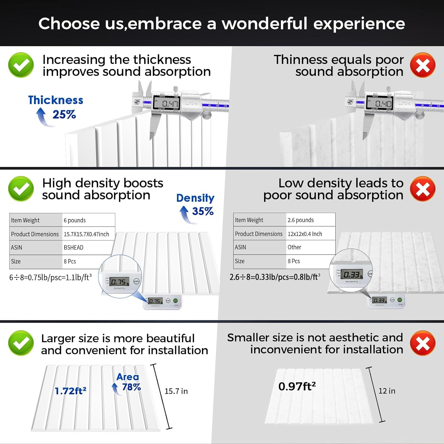 - 【Excellent Quality】: This sound panels is made of high-quality 100% polyester, odorless and flame retardant. There are no risks associated with spending long periods of time in a room with soundproof wall panels. And compared with traditional sound panels noise reducing for walls, our products have higher thickness (25% thicker) and density (35% denser)larger in size(178% area),which means better durability and sound absorption