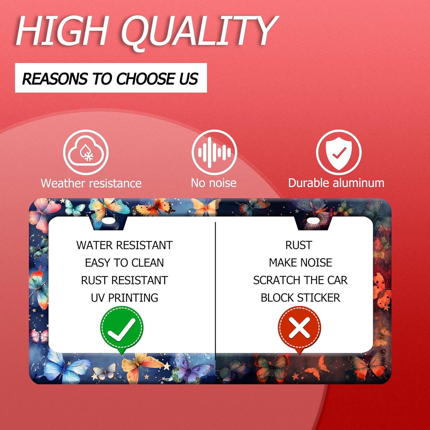 Colorful Butterfly License Plate Frame Fantasy Butterflies License Plate Frames Funny Stainless Steel Accessories Cars Decor with 2 Holes and Screws Fits Standard Us Ca Vehicles Holder 12.2 X 6 Inch