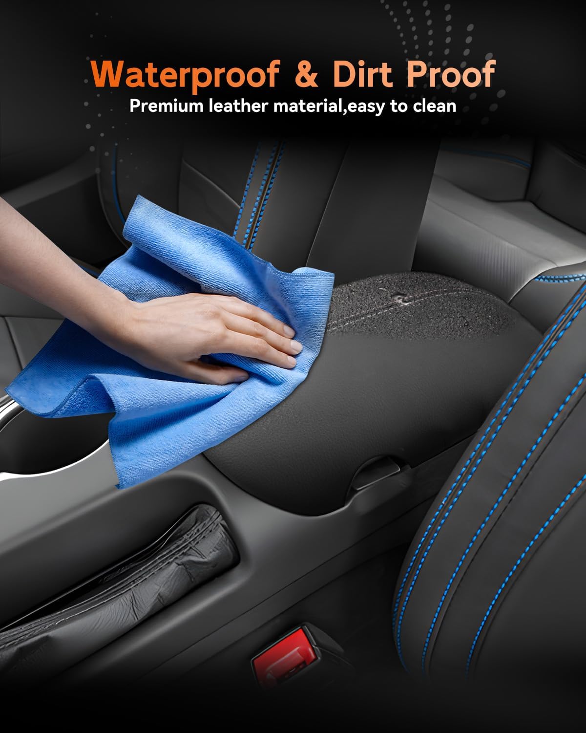 - [Excellent Scratch Resistance] The car Armrest Cover for Ford Mustang 2024-2025 is made of high quality PU microfiber leather, thick enough to keep out pet paws, dust and sticky fingers. The surface is waterproof, wear-resistant and durable, breathable, light weight and easy to wipe clean of dirt.