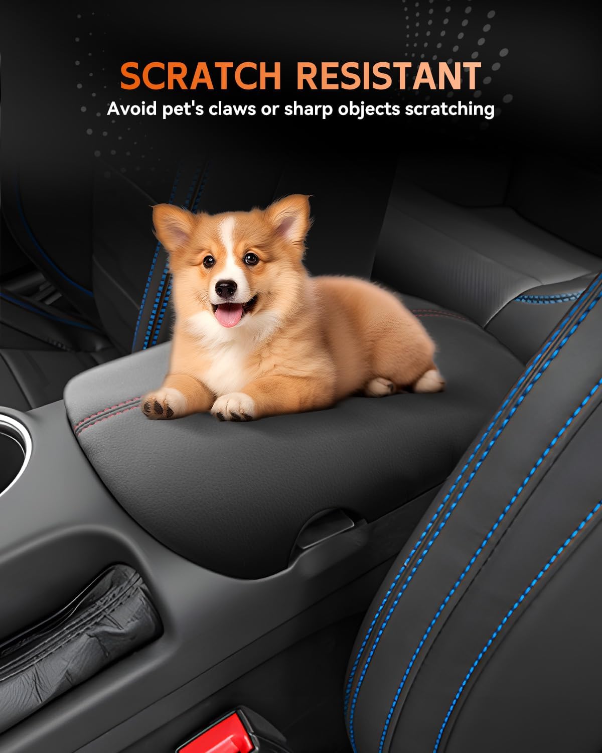 - [Excellent Scratch Resistance] The car Armrest Cover for Ford Mustang 2024-2025 is made of high quality PU microfiber leather, thick enough to keep out pet paws, dust and sticky fingers. The surface is waterproof, wear-resistant and durable, breathable, light weight and easy to wipe clean of dirt.