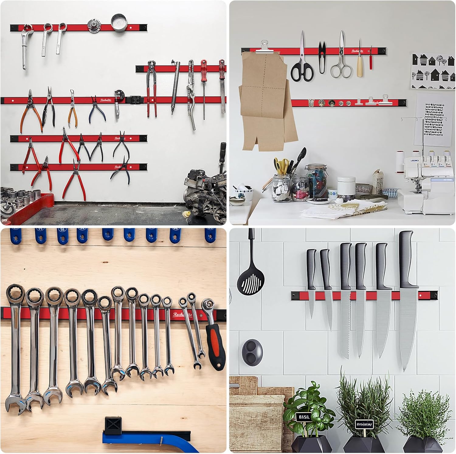 - MAGNETIC TOOL HOLDER SET: Rechabite magnet tool organizer set includes 2 x 12", 2 x 18" and 2 x 24", totally 6 pieces magnetic tool bars, comes with 12 mounting brackets, screws and anchors. Each magnetic tool strip is extendable with each other connected.