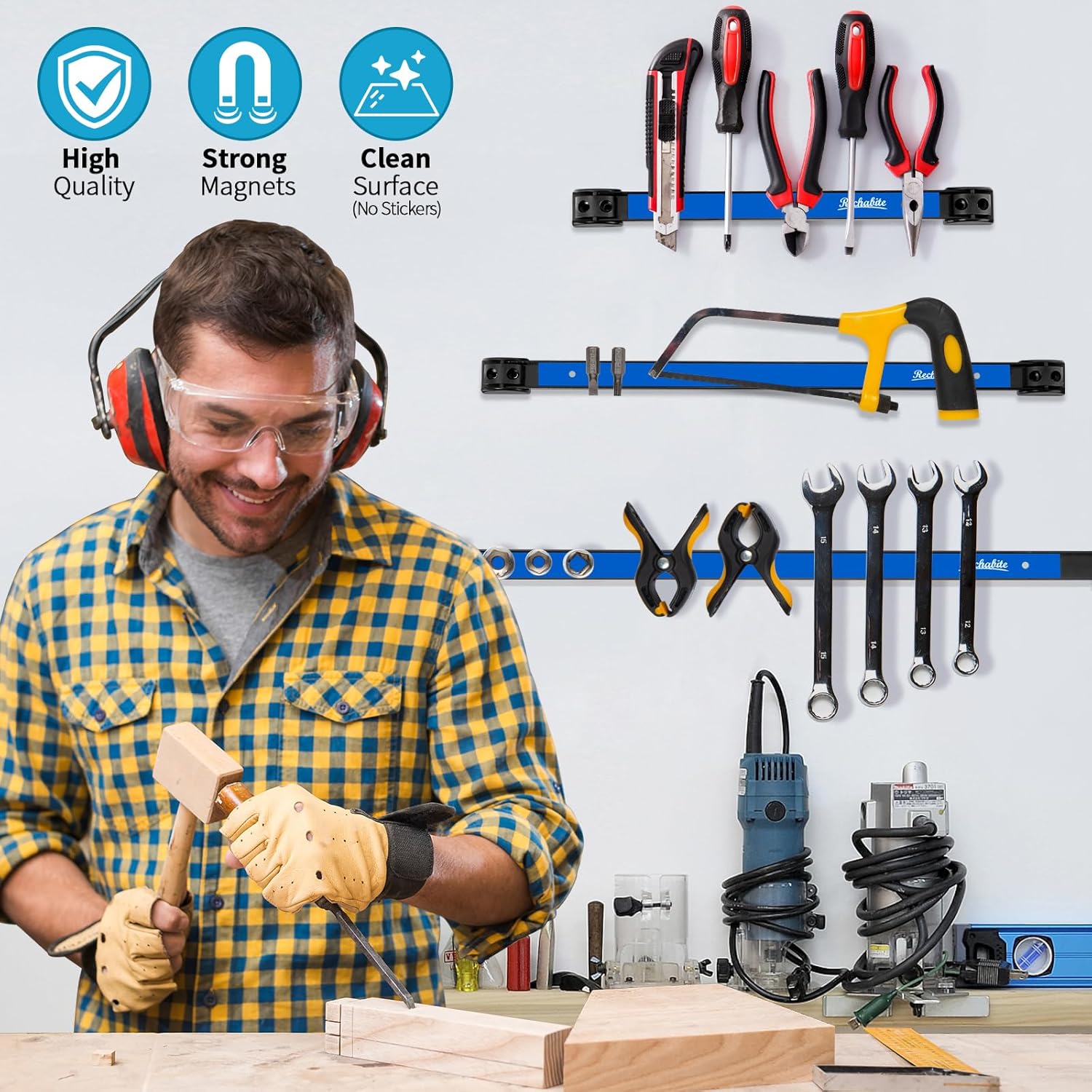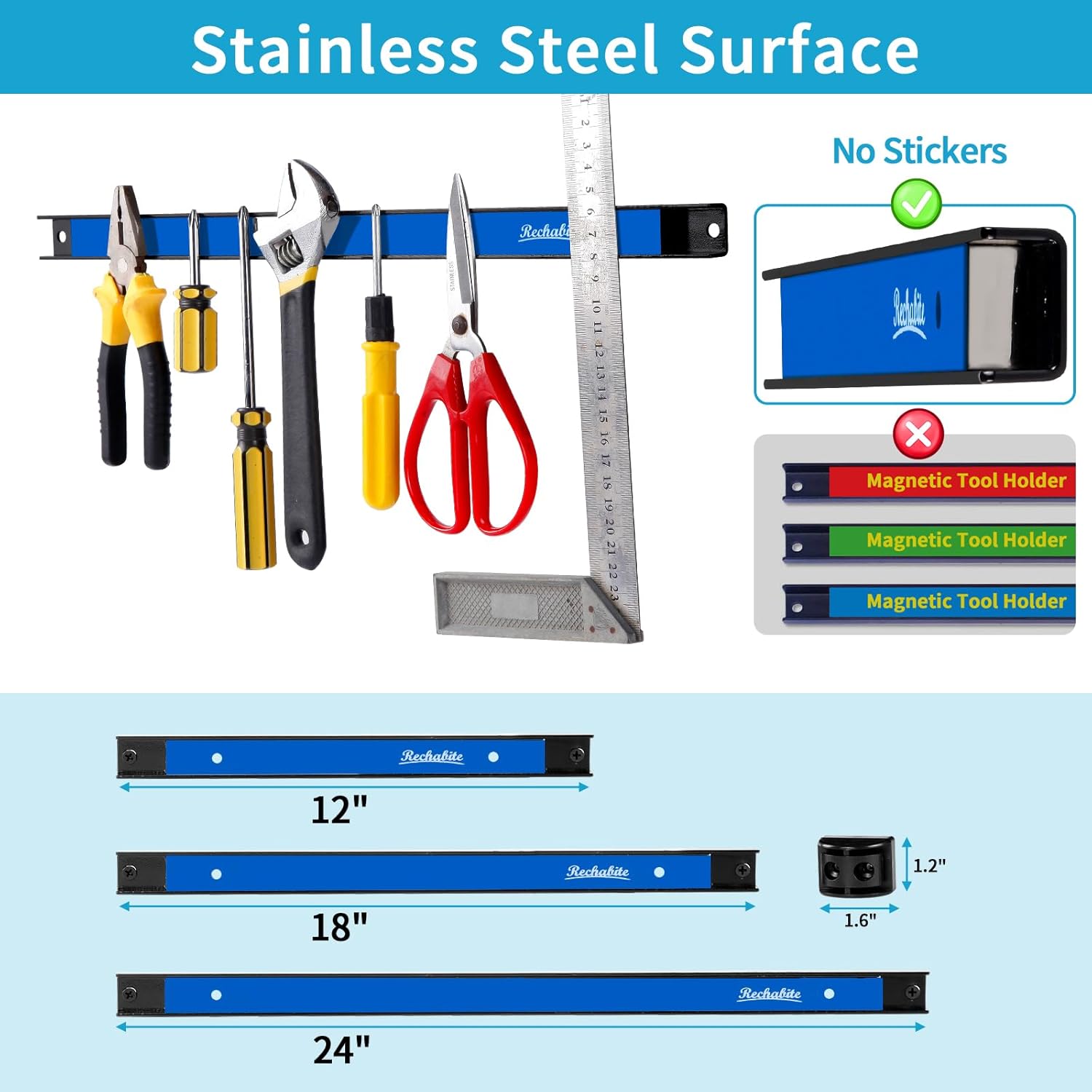 - MAGNETIC TOOL HOLDER SET: Rechabite magnet tool organizer set includes 2 x 12", 2 x 18" and 2 x 24", totally 6 pieces magnetic tool bars, comes with 12 mounting brackets, screws and anchors. Each magnetic tool strip is extendable with each other connected.