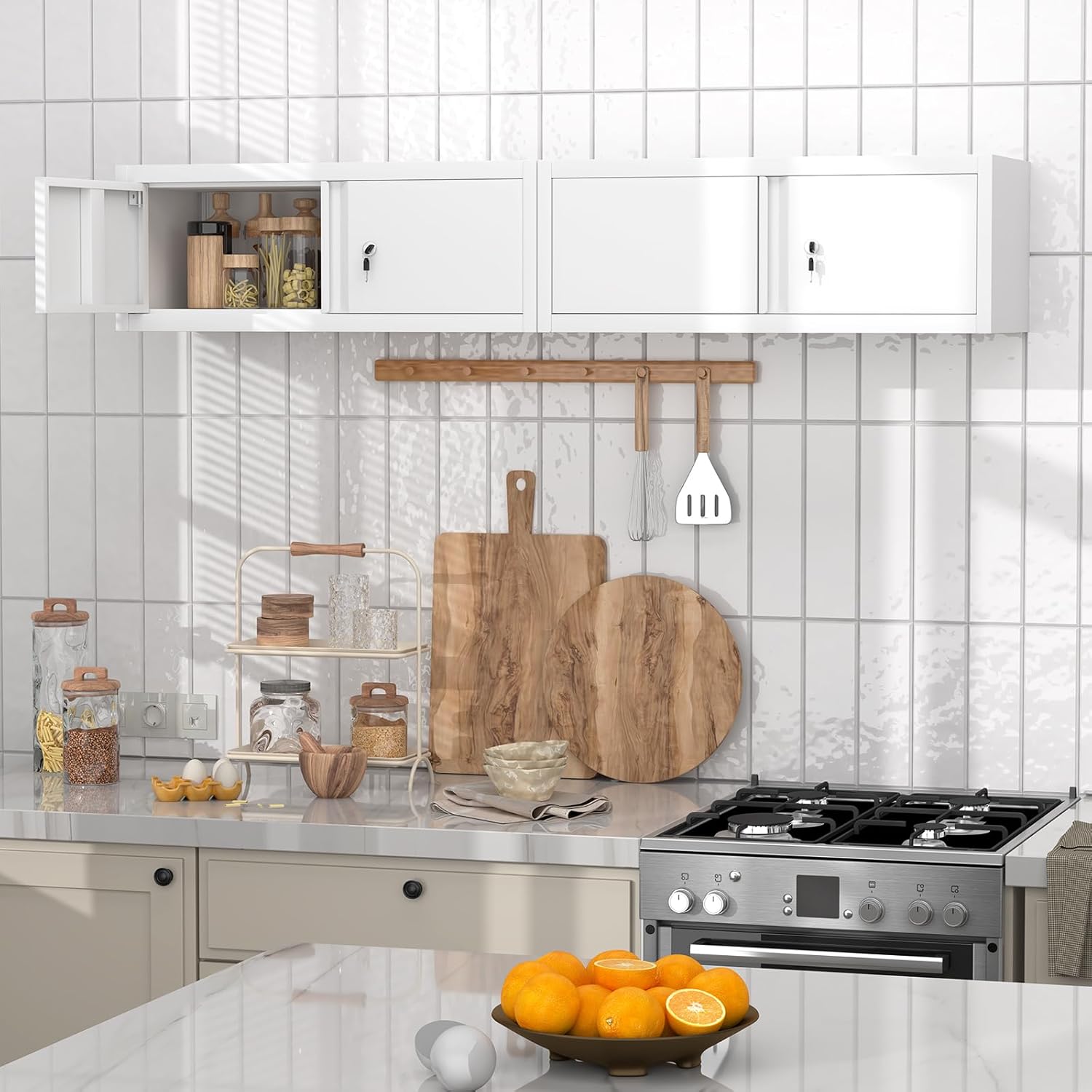 - 【Wall Mounted Storage Cabinet】This durable wall mounted cabinet with lockable doors and gooseneck handle, compact size, you will find it suitable for your garage, home office, bathroom, pantry or utility room
