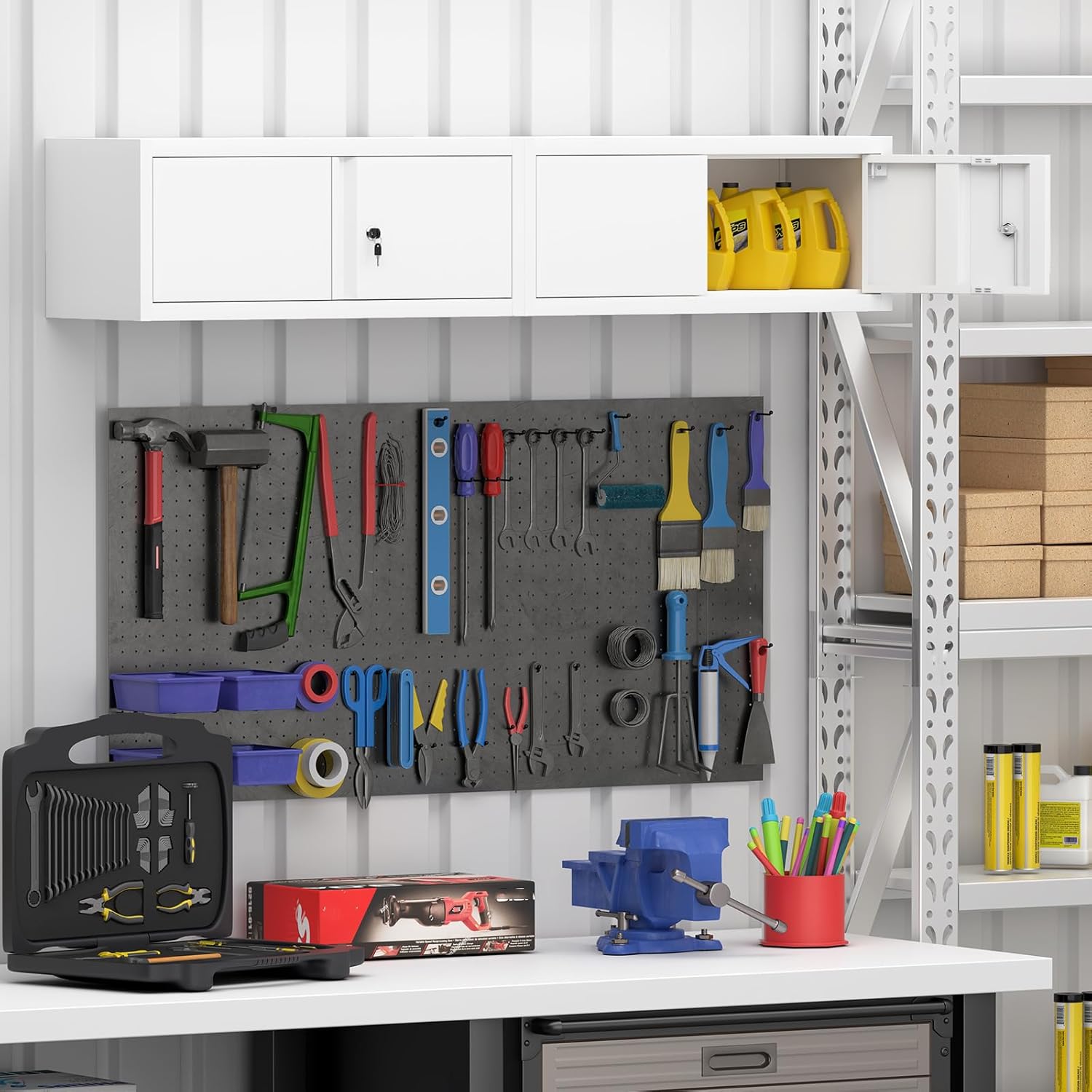 - 【Quality Wall Cabinet for Garage】This metal wall cabinet is made of thickened alloy steel plate, built to last with strong and durable structure.