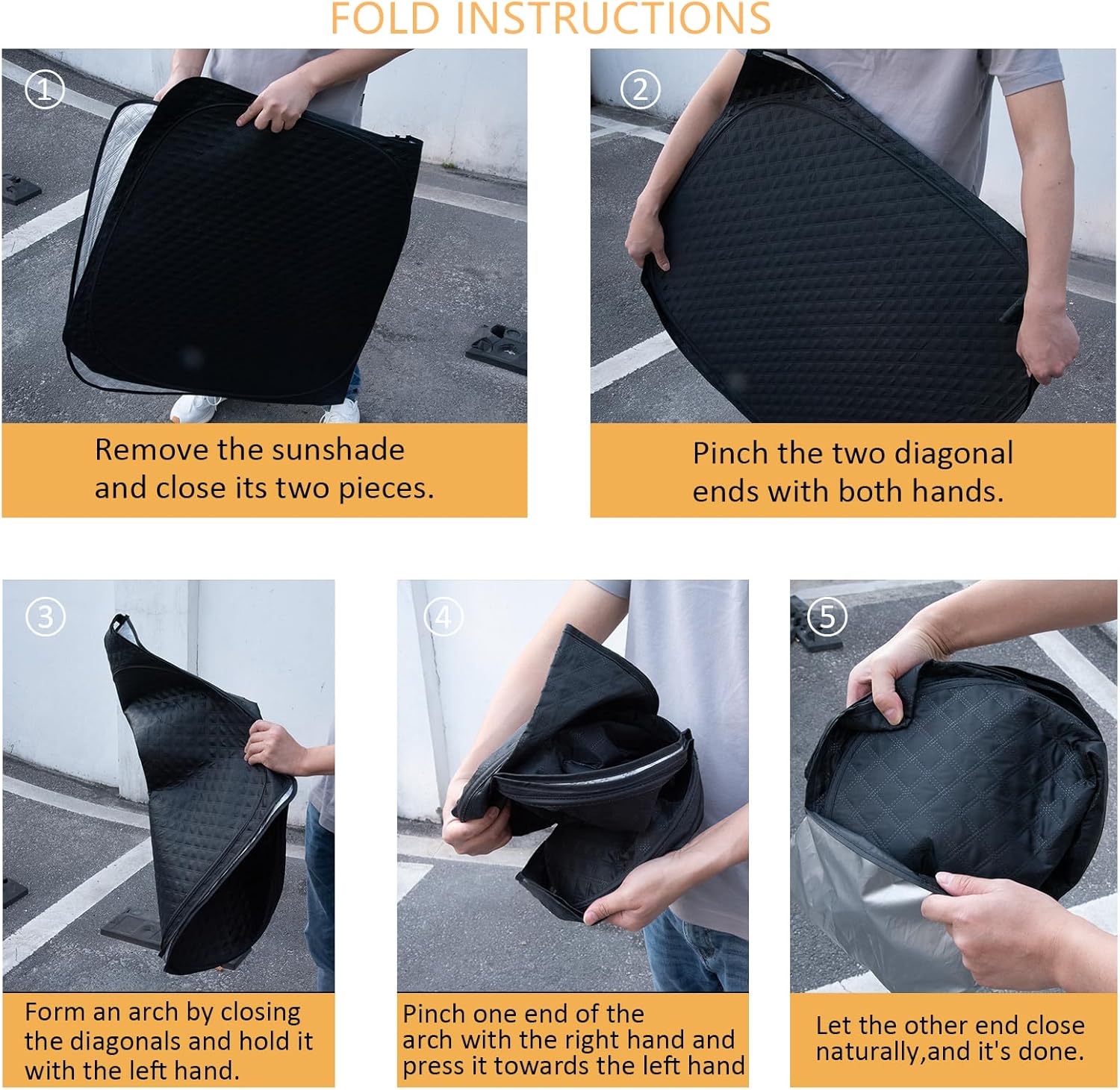 - 【More durable and sturdy】 The windshield sun cover adopts a double steel ring design, and the thickened steel wires offer better supporting effect. Easy to fold and convenient for storage. Because of the multiple layers and double steel rings, please practice the folding method more. After getting used to it, you will find it very simple.If you have any problems with folding, please contact us.