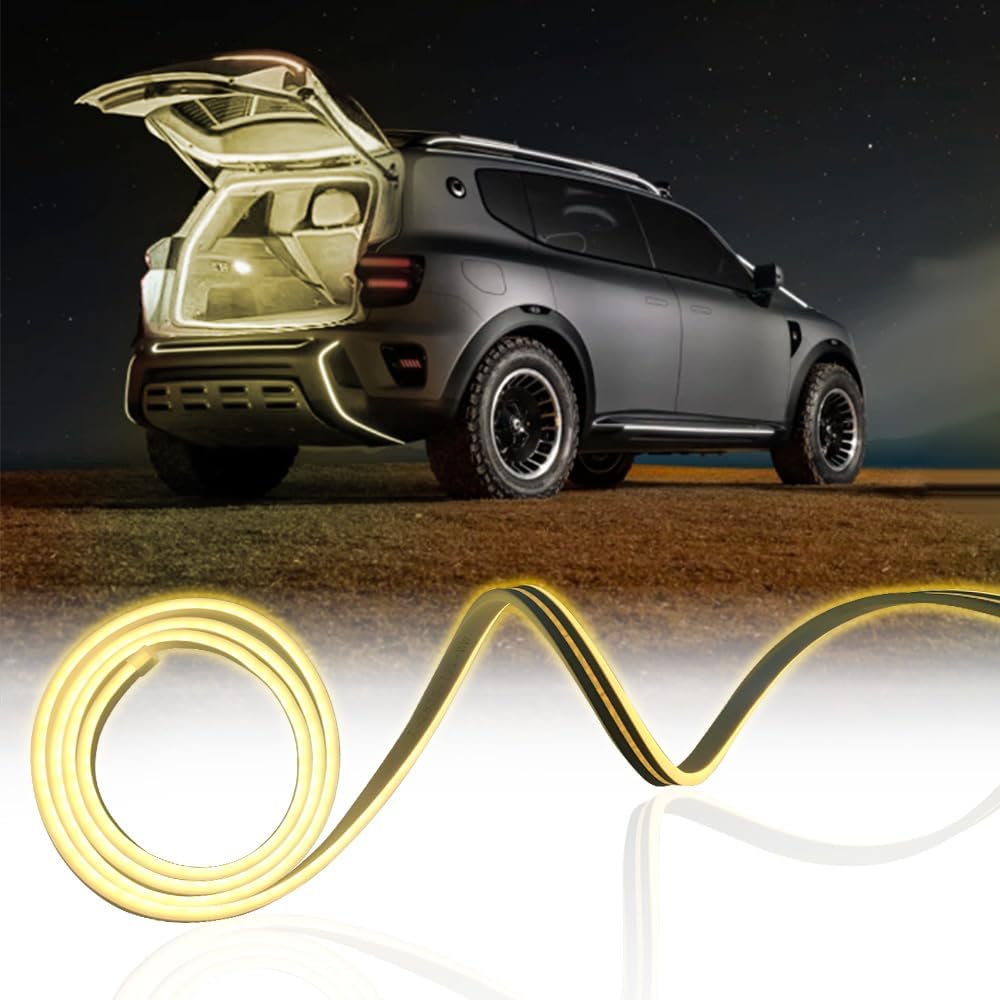 Car LED Strip Light For Trunk, 79Inch IP67 Silicone Waterproof Neon Light Strip Embedded, Flexible Cutting Universal Auto Interior Lights(Warm White)