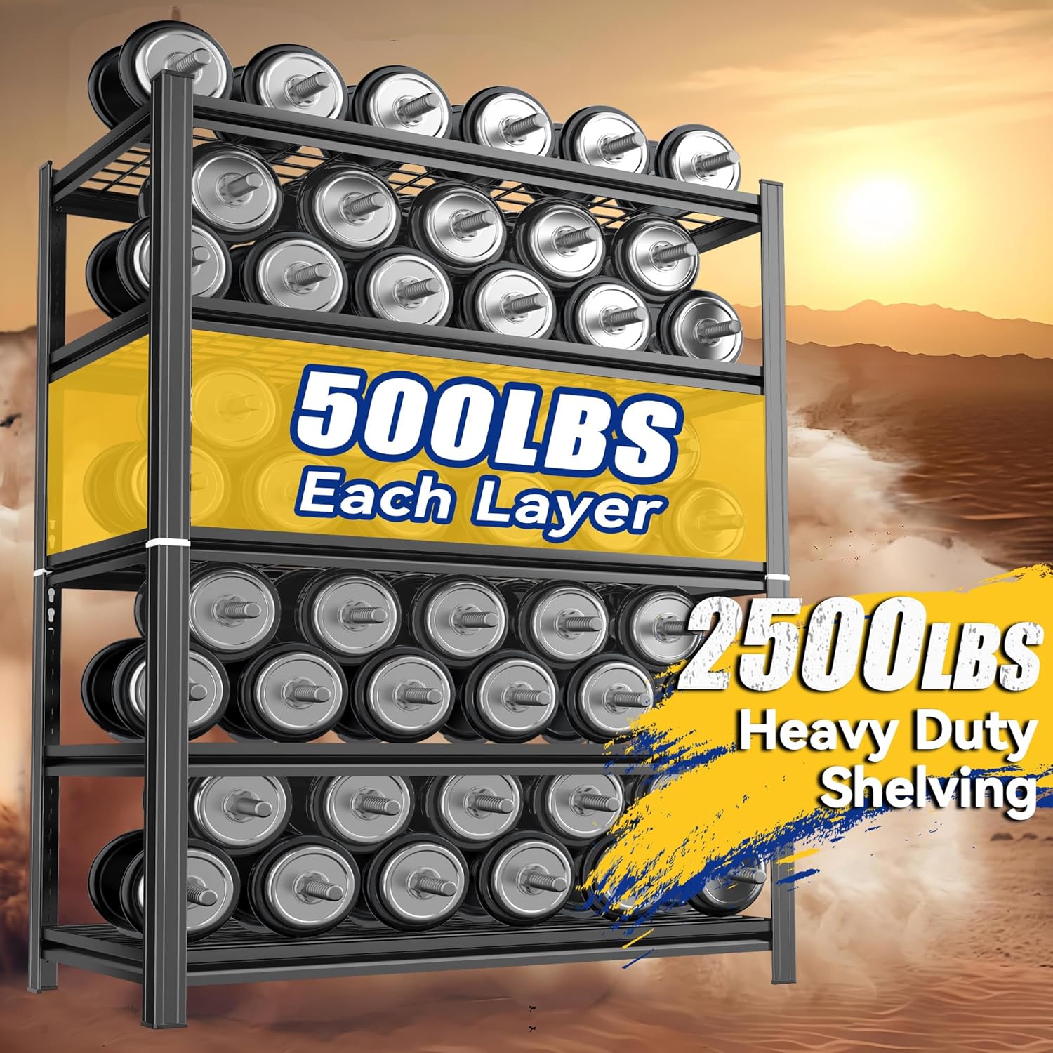 - ă2500 lbs Load CapacityăConstructed with robust steel and double metal legs, this shelving unit supports up to 2500 lbs in total (with 500 lbs per shelf), ensuring reliable storage for heavy items. Unlike traditional particle board, this heavy-duty design provides unmatched durability and stability for even the bulkiest goods.