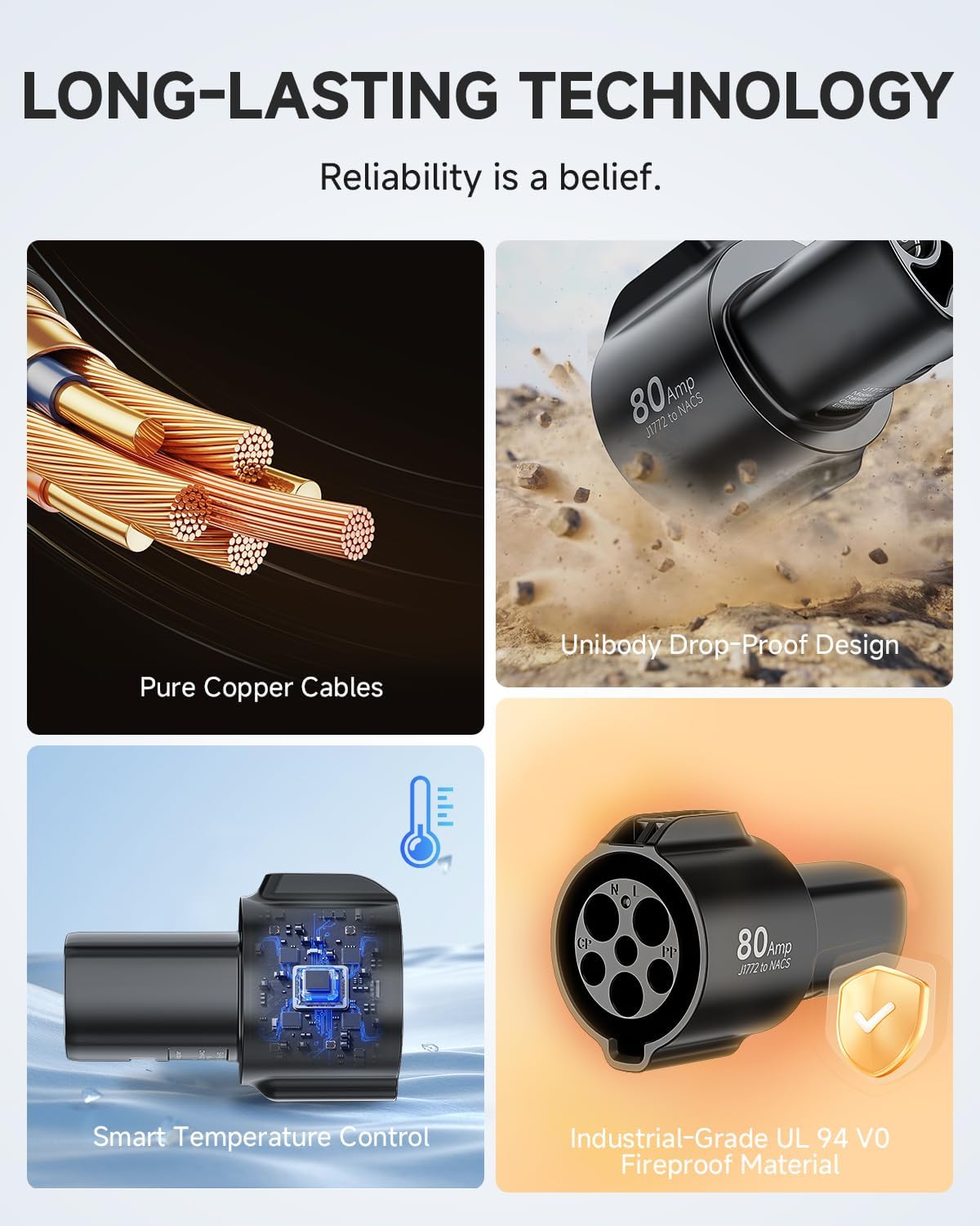 - All-Climate Readiness for Reliable Use: With IP54 rain/snow resistance and the ability to withstand - 22°F to 122°F (- 30°C to 50°C), this adapter ensures no weather delays. You can charge confidently during thunderstorms, light snow, or summer heatwaves