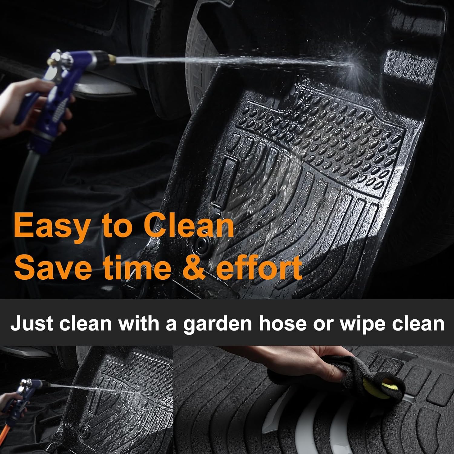 - ăEasy to Remove & Clean ă Binmotor 2020 2019 2018 Kia Stinger AWD rubber floor mats are waterproof and stain-resistant, mud stains can simply be wiped with a damp cloth or washed with water and dried, saving time and effort, which can better keep the interior of the car clean and tidy.