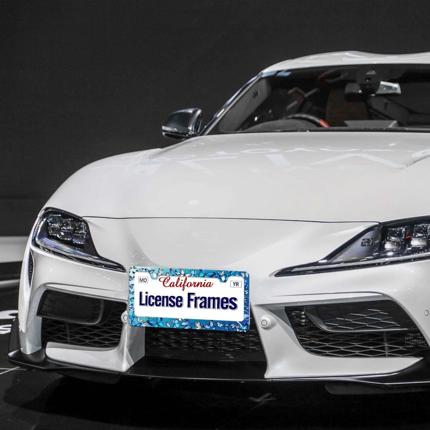 - Blue Butterfly License Plate Frame for Women:You will receive a set of 2 license plate frames,All Accessories Needed are Included (4 Screw Caps,4 Screws,4 Washers),Quick and Simple Installation,you don’t need to buy any other hardware or fasteners,Anti-theft caps are also included.