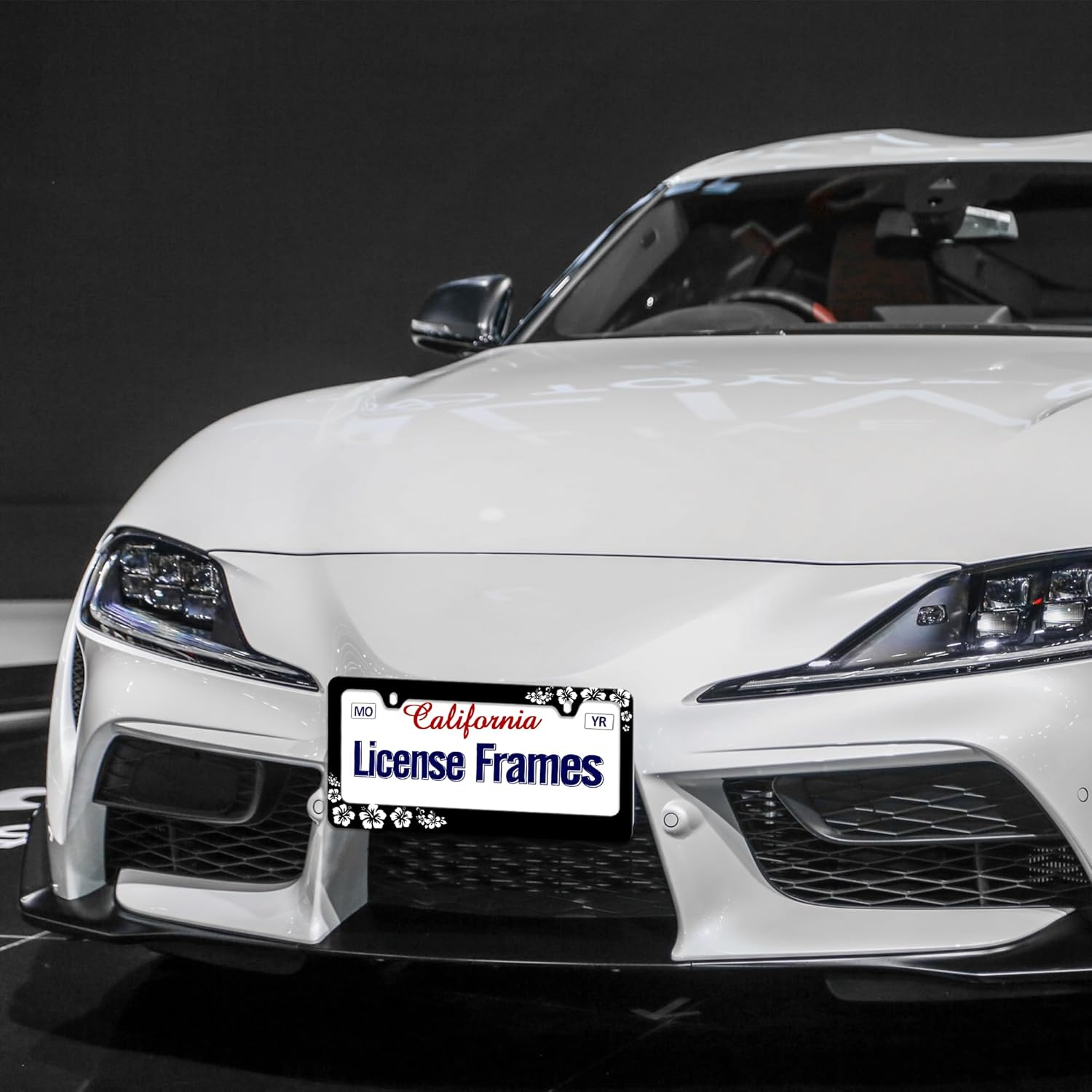 - Hibiscus License Plate frames :You will receive a set of 2 license plate frames,All Accessories Needed are Included (4 Screw Caps,4 Screws,4 Washers),Quick and Simple Installation,you don’t need to buy any other hardware or fasteners,Anti-theft caps are also included.