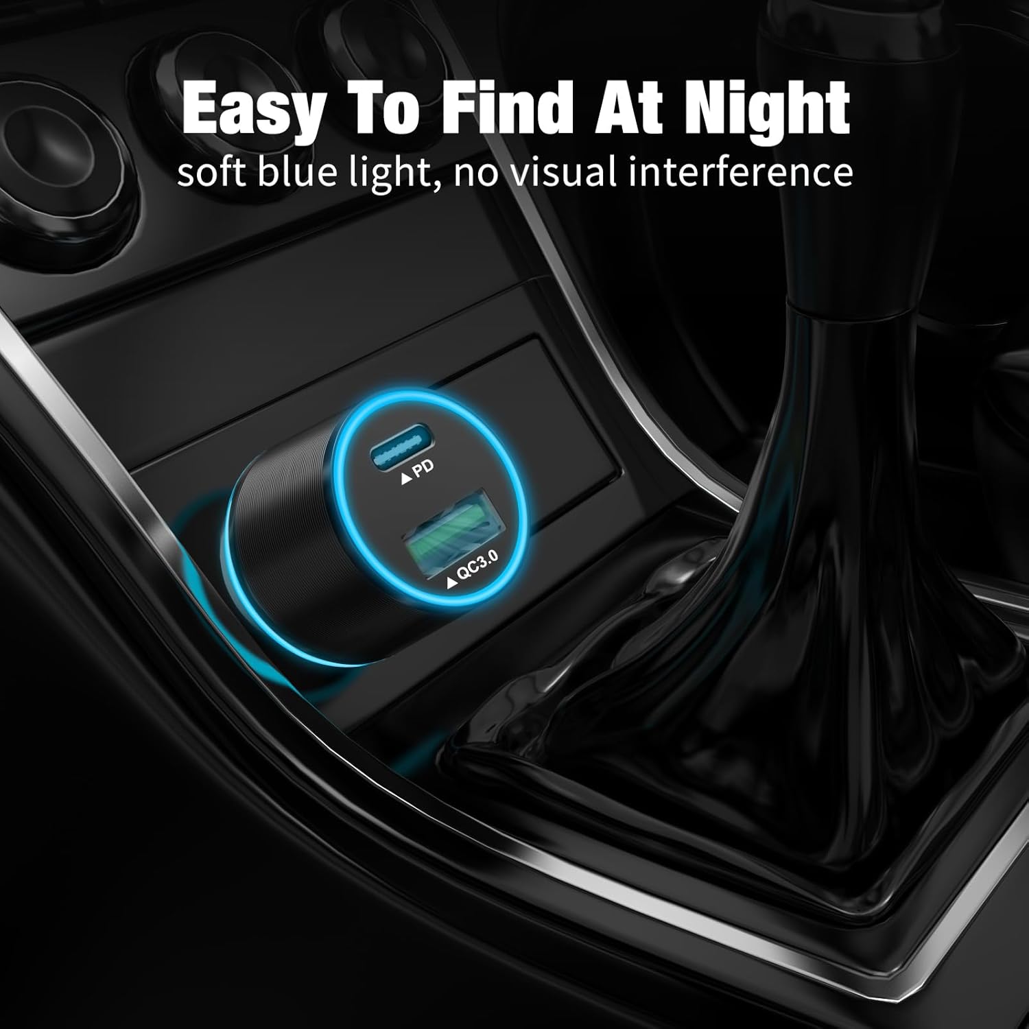 - Easy To Find At Night - Rapid Type C car charger with soft blue LED light design makes it effortless to find the charging port even while driving at night time, convenient for you to charge your devices and enjoy safe driving.
