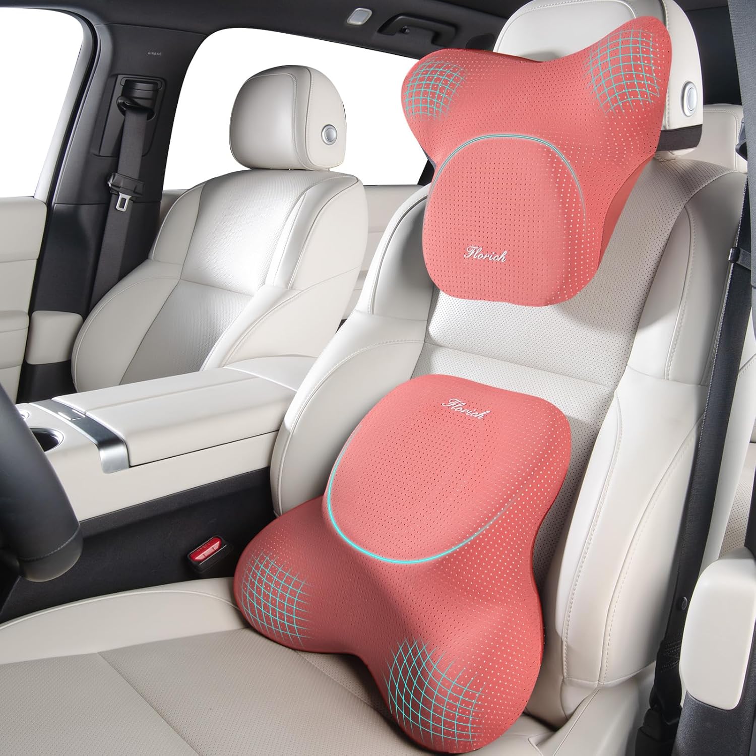 FLORICH Car Lumbar Support Pillow and Neck Headrest Pillow for Office Chair, Ergonomic Memory Foam, Relieves Neck, Back Pain, Pressure-Relieving Back Support for Car, Office Chair & Wheelchair – Red