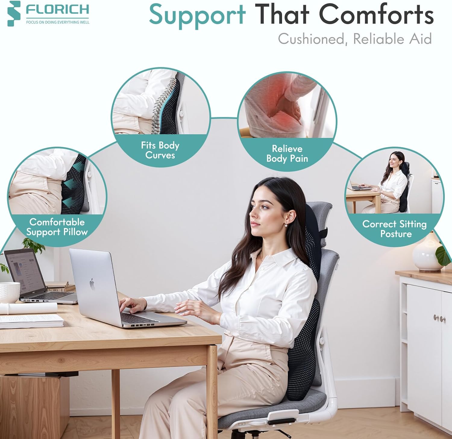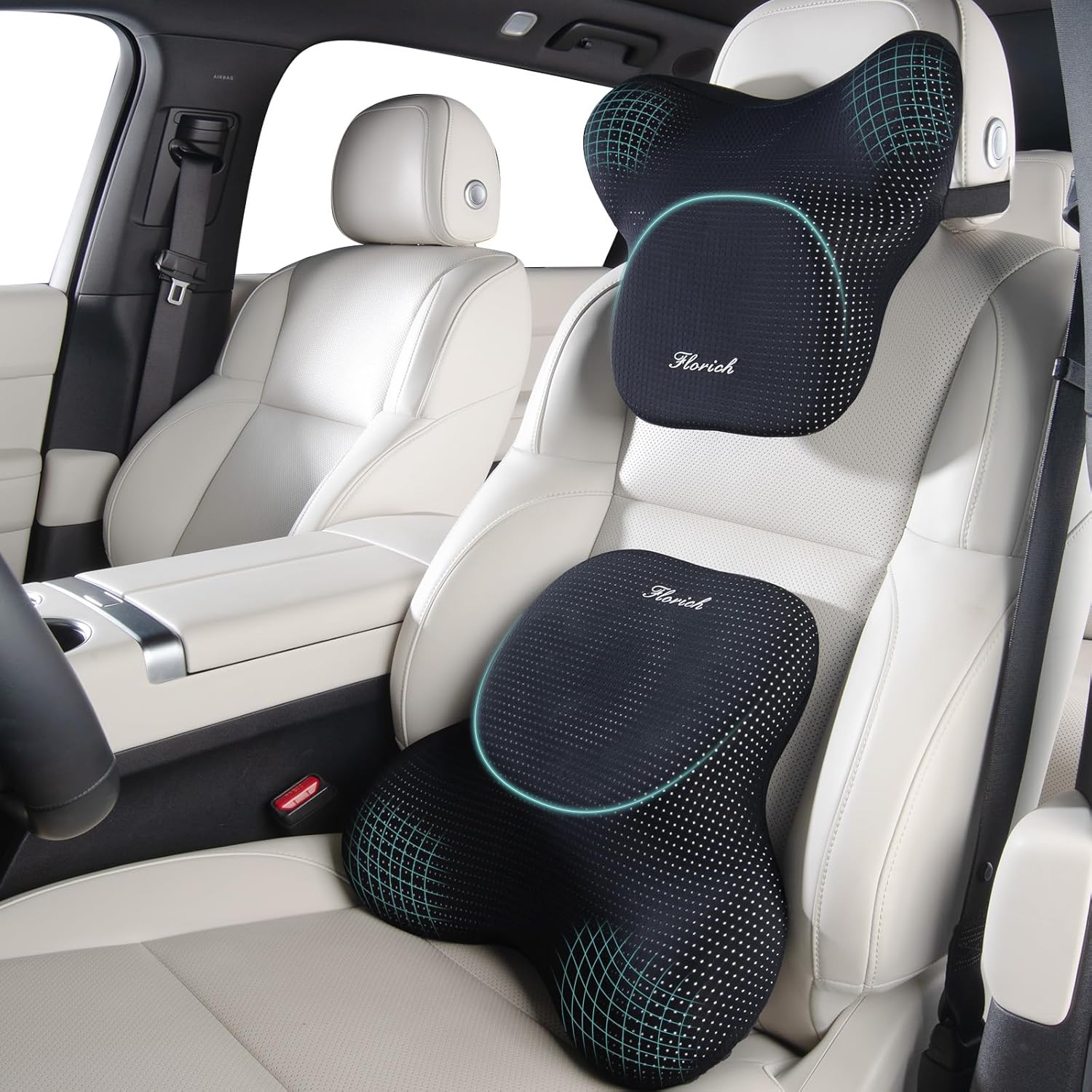- Enjoy Comfort in Multiple Scenarios: Florich lumbar support pillow and neck headrest pillow set makes for a memorable and healthy gift for Christmas, New Year's, Mother's Day, Father's Day, Valentine's Day, birthdays, weddings, and graduations. Suitable for people of all ages and lifestyles, it is not only ideal for office chairs, home chairs, car seats, gaming chairs, airplane seats, wheelchairs, etc., but also for office workers, drivers, teachers, students, and those who enjoy reading and gaming.