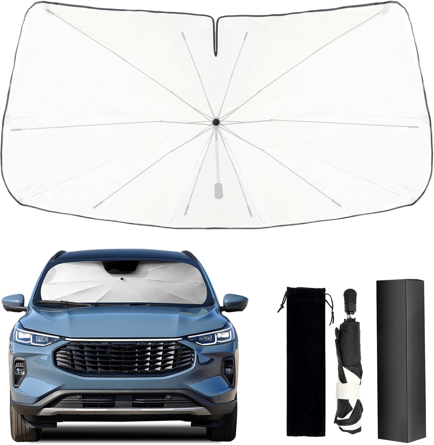 - Precision Custom Fit – Specifically designed for 2020‑2025 Ford Escape (gas & hybrid). The adjustable connecting rod and 10‑rib framework ensure full windshield coverage without sagging