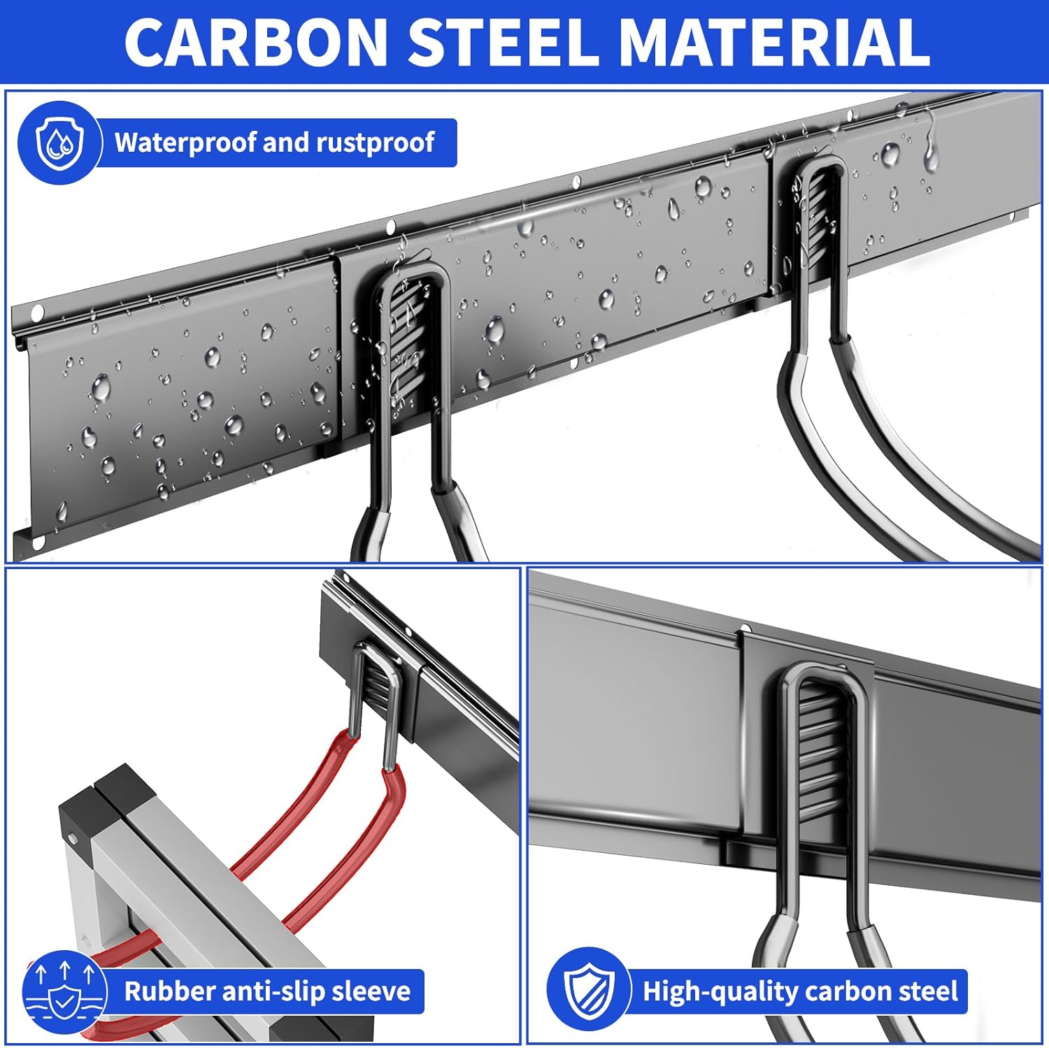- ADJUSTABLE & VERSATILE STORAGE: tool organizers and storage features 4 tracks and 10 adjustable hooks, a versatile garage organizer for your garage. Customize height and hook placement for various items, from garden tools to folding chairs