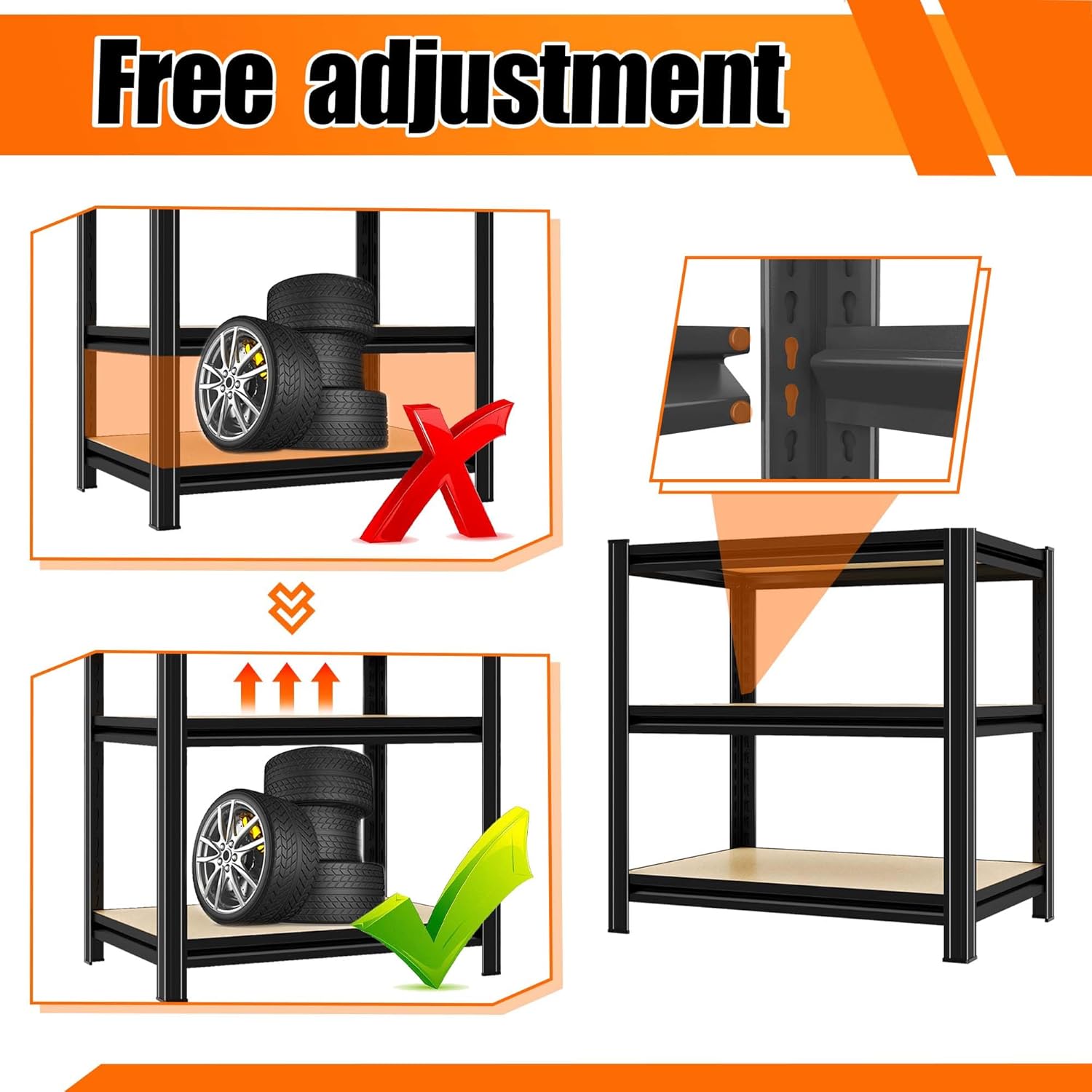 - ăQuick and Easy AssemblyăFeaturing an innovative buckle connection design, the assembly of this wooden shelving unit is incredibly simple and requires no tools. Just follow the easy-to-understand instructions to complete the setup in no time. Enjoy a tidy storage space quickly and effortlessly, maximizing the functionality of your garage with these versatile shelves