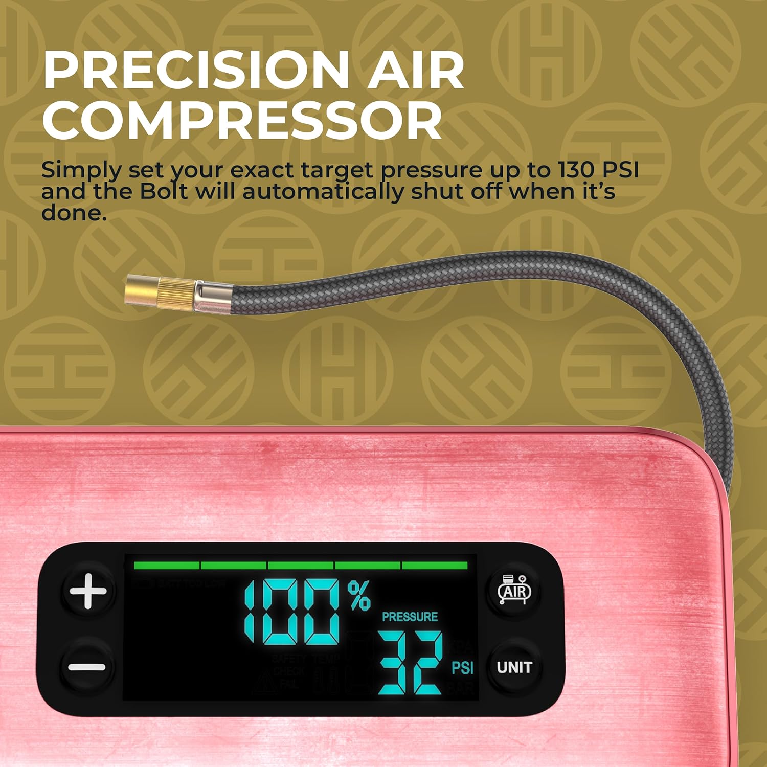 HALO Bolt Ultimate 3 Portable Car Battery Jump Starter | 130 PSI Air Compressor, 55.5Wh USB Power Bank, Large Display, Emergency Floodlight & Charger, Jumps Cars SUVs & Trucks, Inflates Tires — Pink