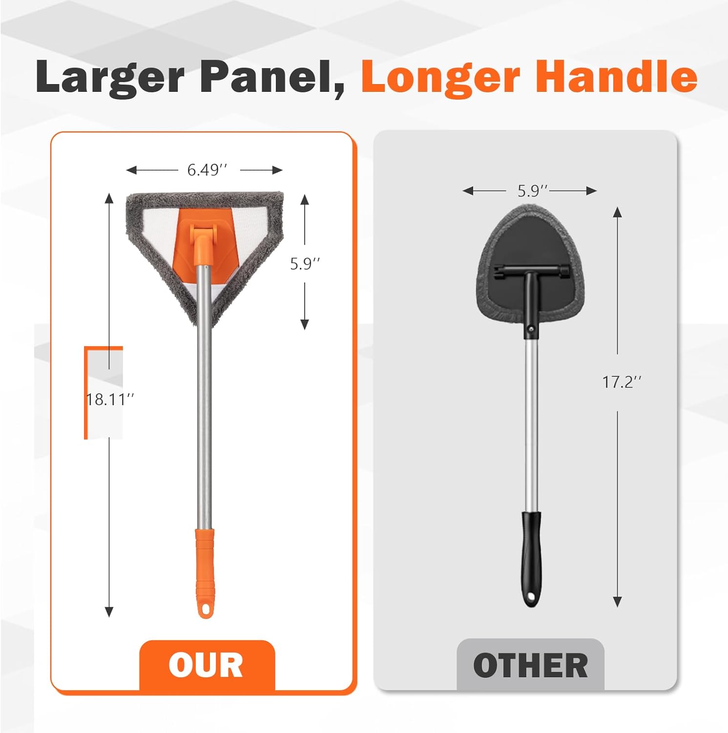 - 【180° Swivel Head & Detachable 16 inchs Handle】Effortlessly clean hard-to-reach interior/exterior windshield corners and behind dashboards with the 180° rotating triangular head. The detachable handle ensures compact storage in your car boot.
