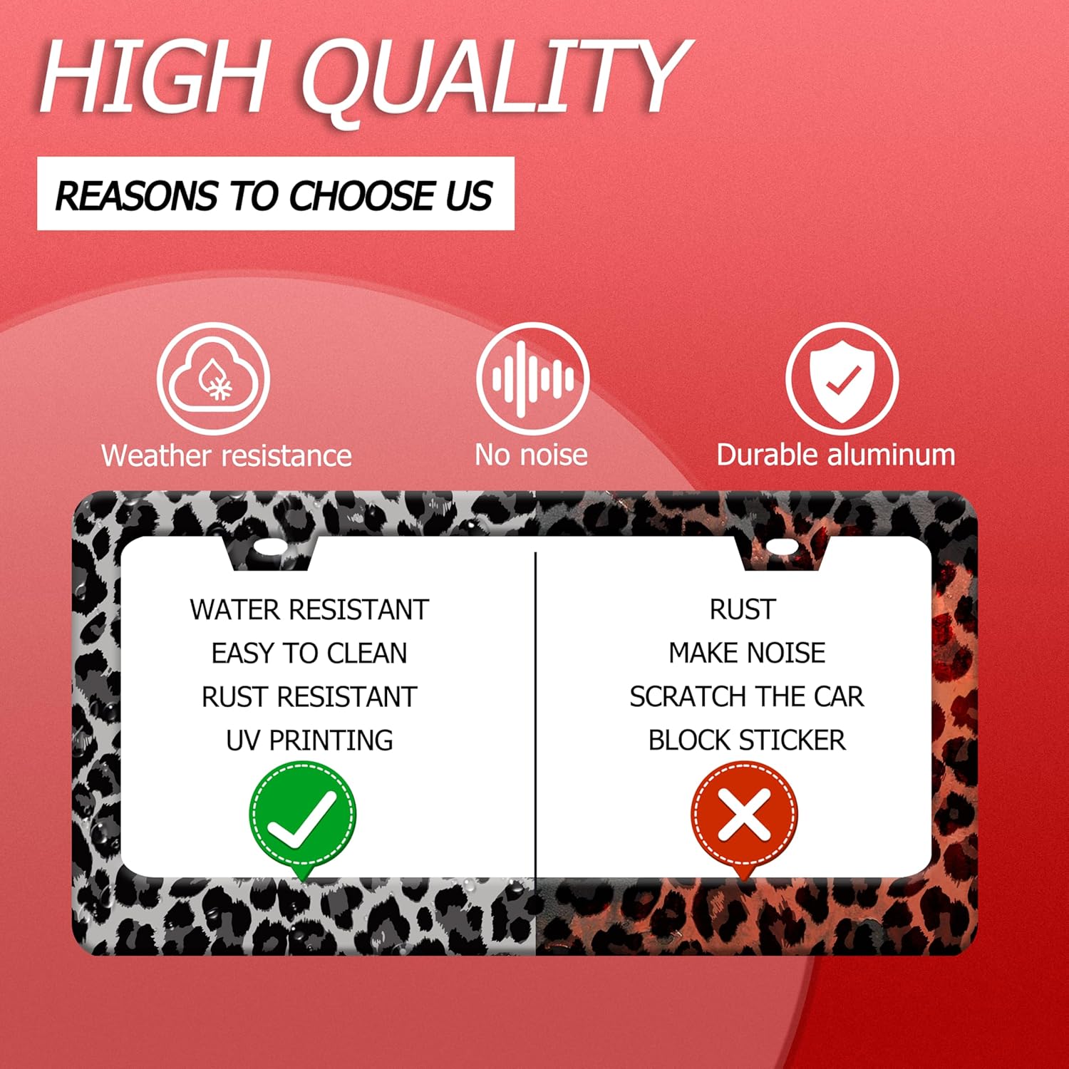 Black Gray Leopard Print License Plate Frame Beautiful Cheetah Print License Plate Holder Funny Stainless Steel Accessories Cars Decor with 2 Holes and Screws Fits Standard Us Ca Vehicles 12.2 X 6 in