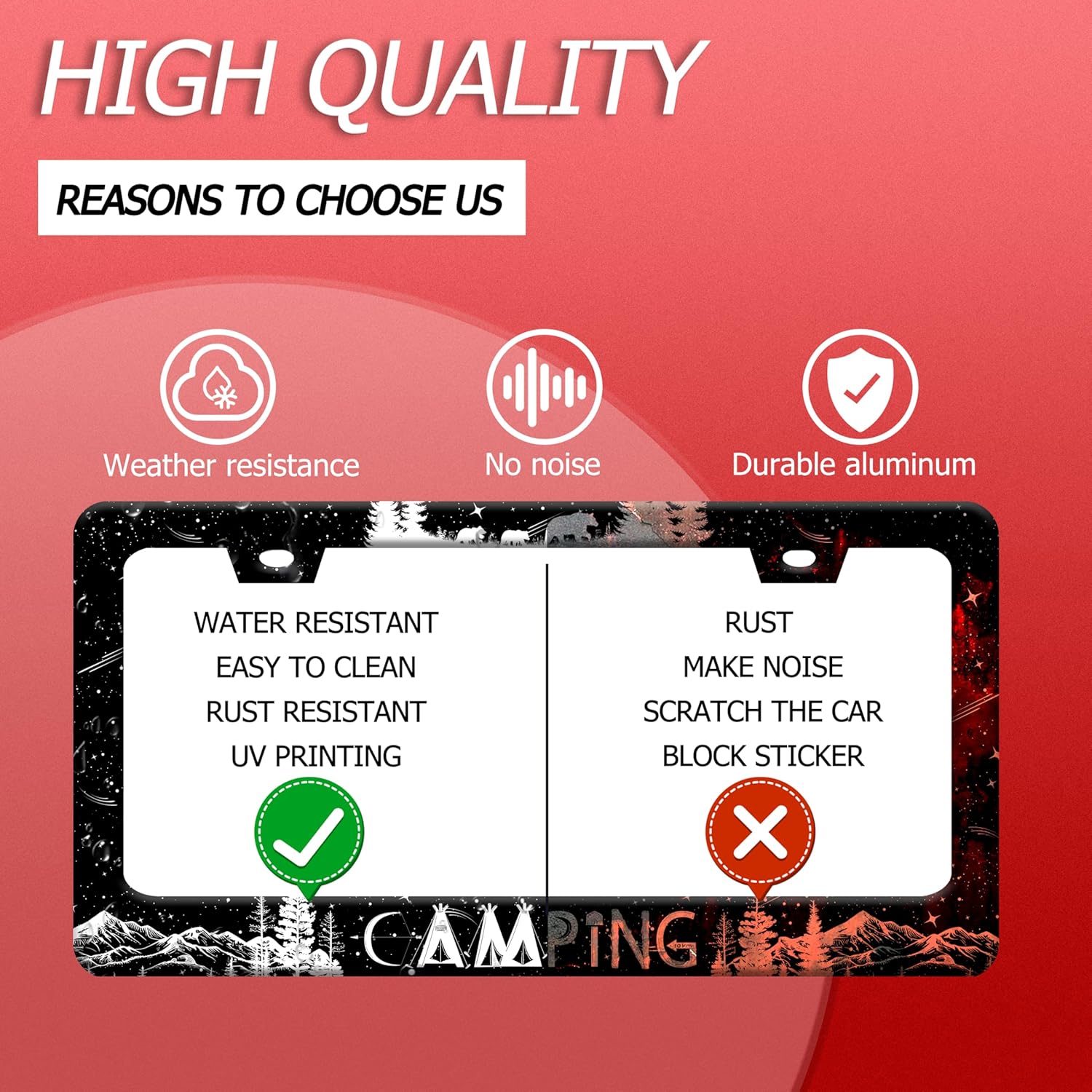 Camping License Plate Frame Forest Mountains License Plate Holder Funny Stainless Steel Accessories Cars Decor with 2 Holes and Screws Fits Standard Us Ca Vehicles License Plate Frames 12.2 X 6 Inch