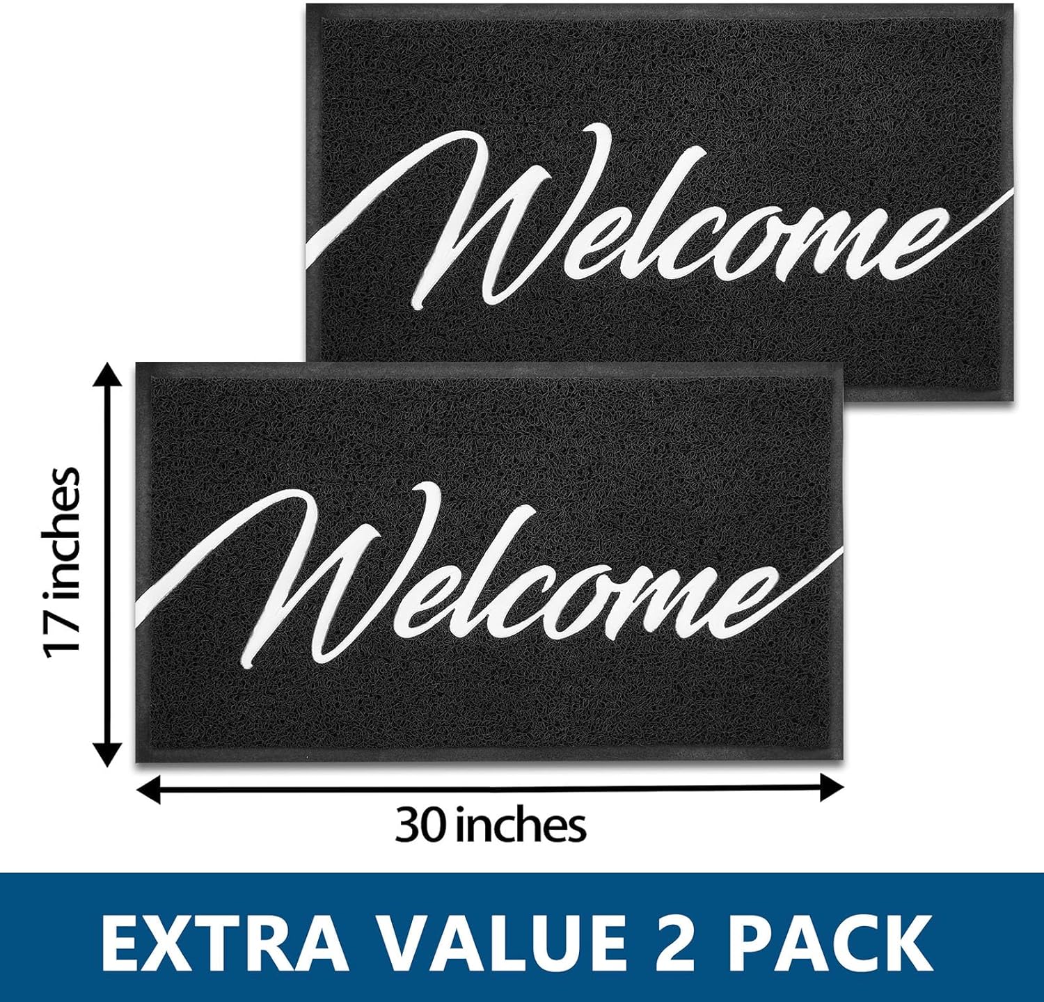 EARTHALL Door Mat 2-Pack Outside Inside Welcome Doormat 30"x17.5" Durable Floor Mat Non Slip Rug Ultra Absorb Mud Easy Clean Front Doormat for Garage, Entryway, Patio, High Traffic Areas, Black