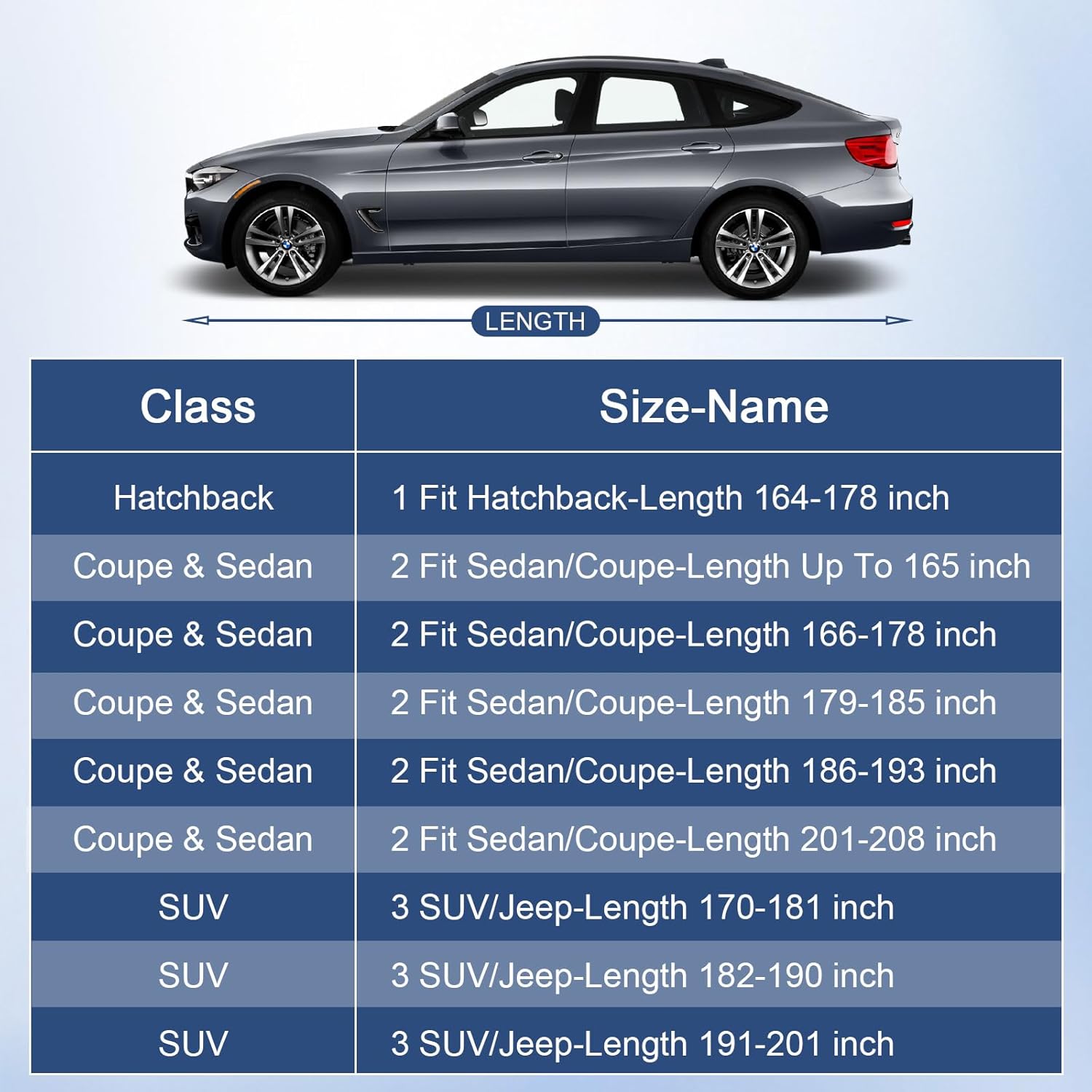 - ăPrecision Fit: Tailored CompatibilityăMolebt car cover is designed for Sedan & Coupe with lengths between 166 to 178 inches. Universal fit BMW Z4, Jaguar F-TYPE, Subaru BRZ, Toyota GR Supra, Nissan 350Z 370Z Z, Porsche 718 Boxster 718 Cayman, etc. Note: Please confirm your vehicle type (Hatchback, Sedan, Coupe, or SUV) before purchase to ensure the perfect fit for your car.