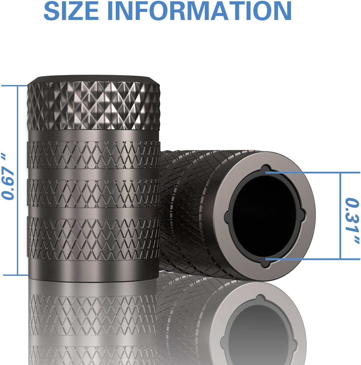 CKAuto Tire Valve Stem Caps, Grey, 4 pcs/Pack, Anodized Aluminum Tire Valve Cap Set, Corrosion Resistant, Universal Stem Covers for Cars Trucks Motorcycles SUVs and Bikes