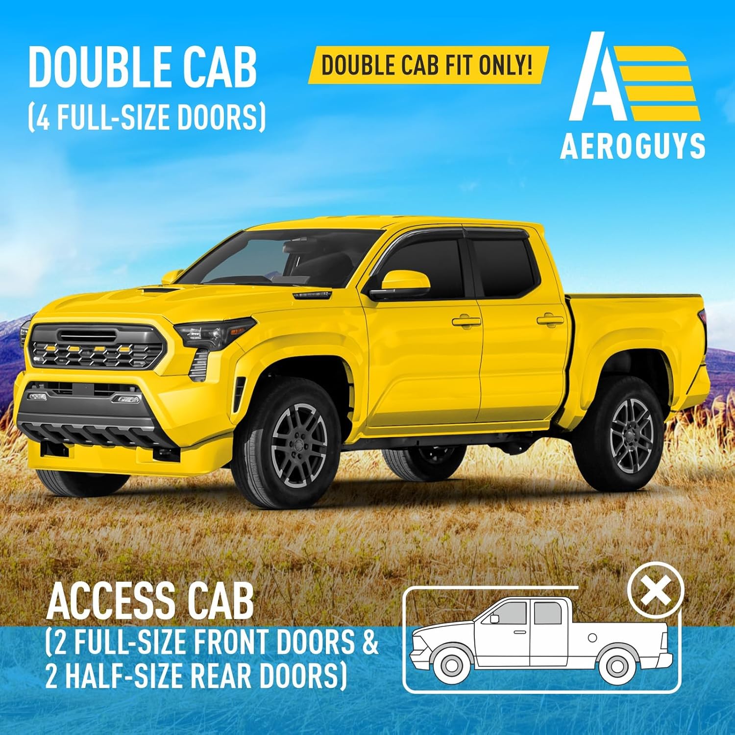 - ATTENTION!!! These high-quality automotive window rain guards CUSTOM FIT only for Toyota Tacoma Double Cab 2024-2025.
