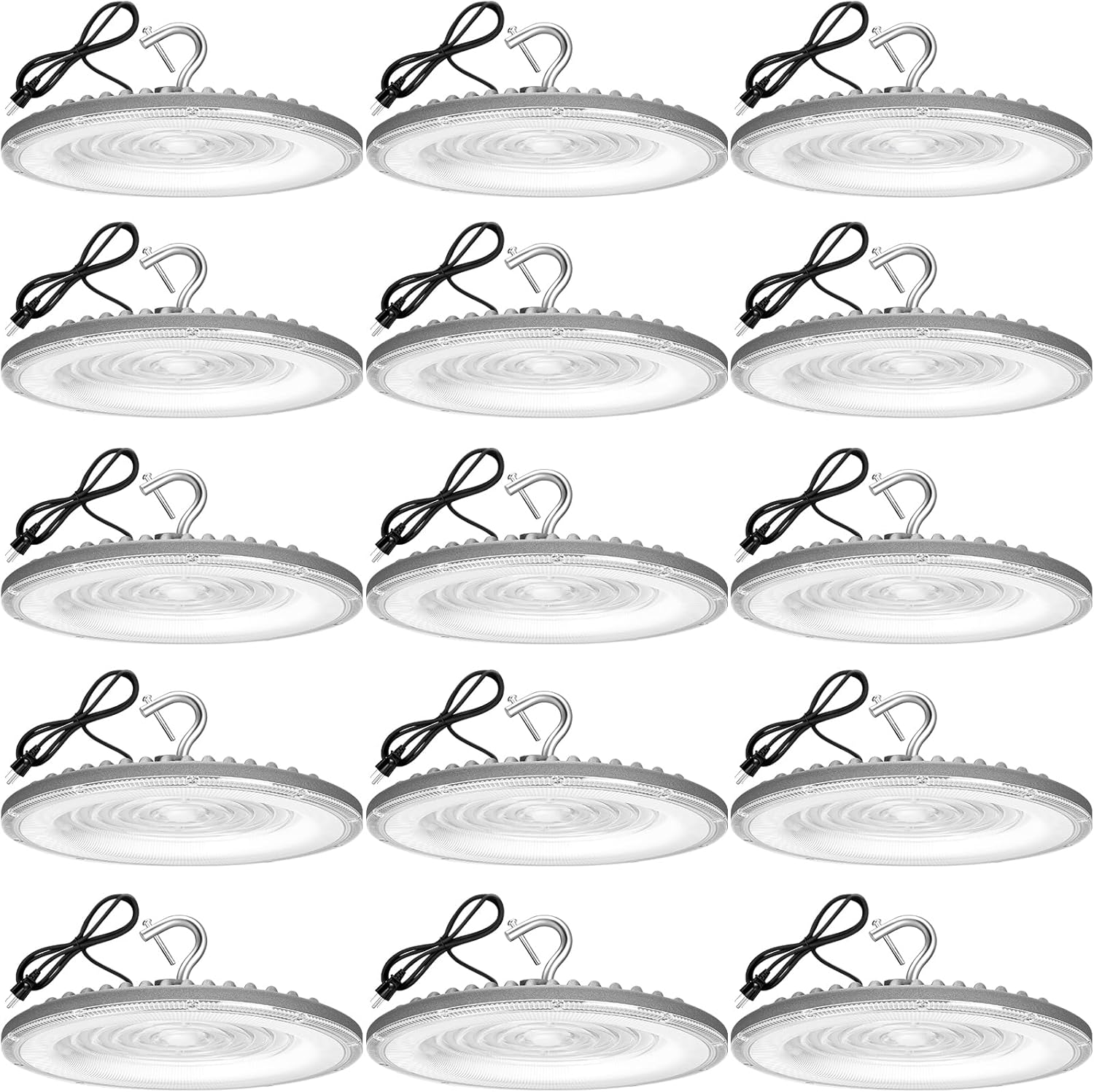 15 Pack 150W UFO Led High Bay Light,120VAC,21050LM 5000K Daylight Area Lighting,IP66 Waterproof 650W MH/HPS with Plug Commercial Bay Lighting for Warehouse/Shop/Workshop/Barn/Gym/Factory