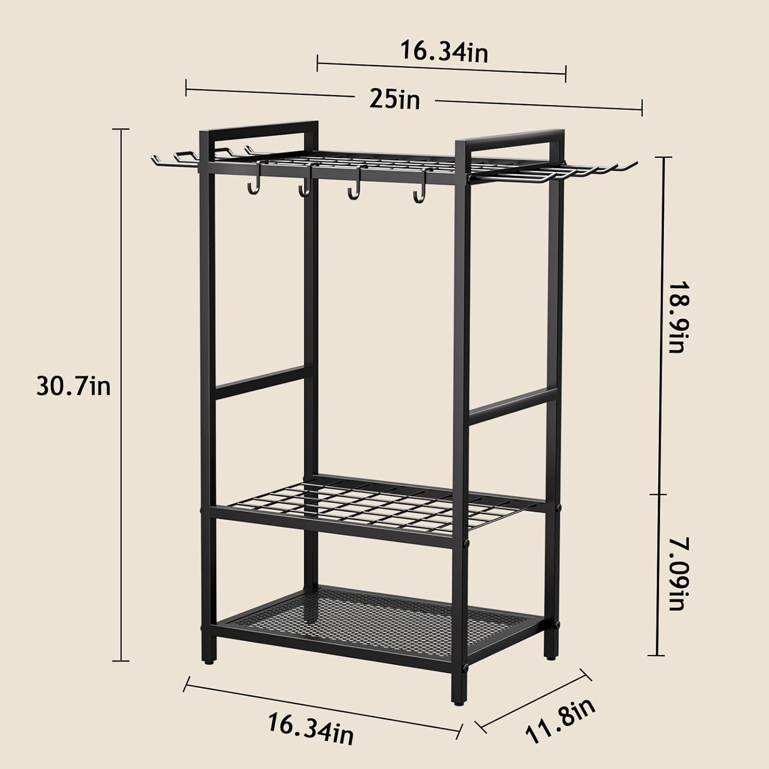 - 【Dimension & Warranty】: The dimension of this garden tool rack is 25"(L) x 11.8"(W) x 30.7"(H). If there is any question with our product or service, please feel free to contact us. We are always here to provide professional solution for you.