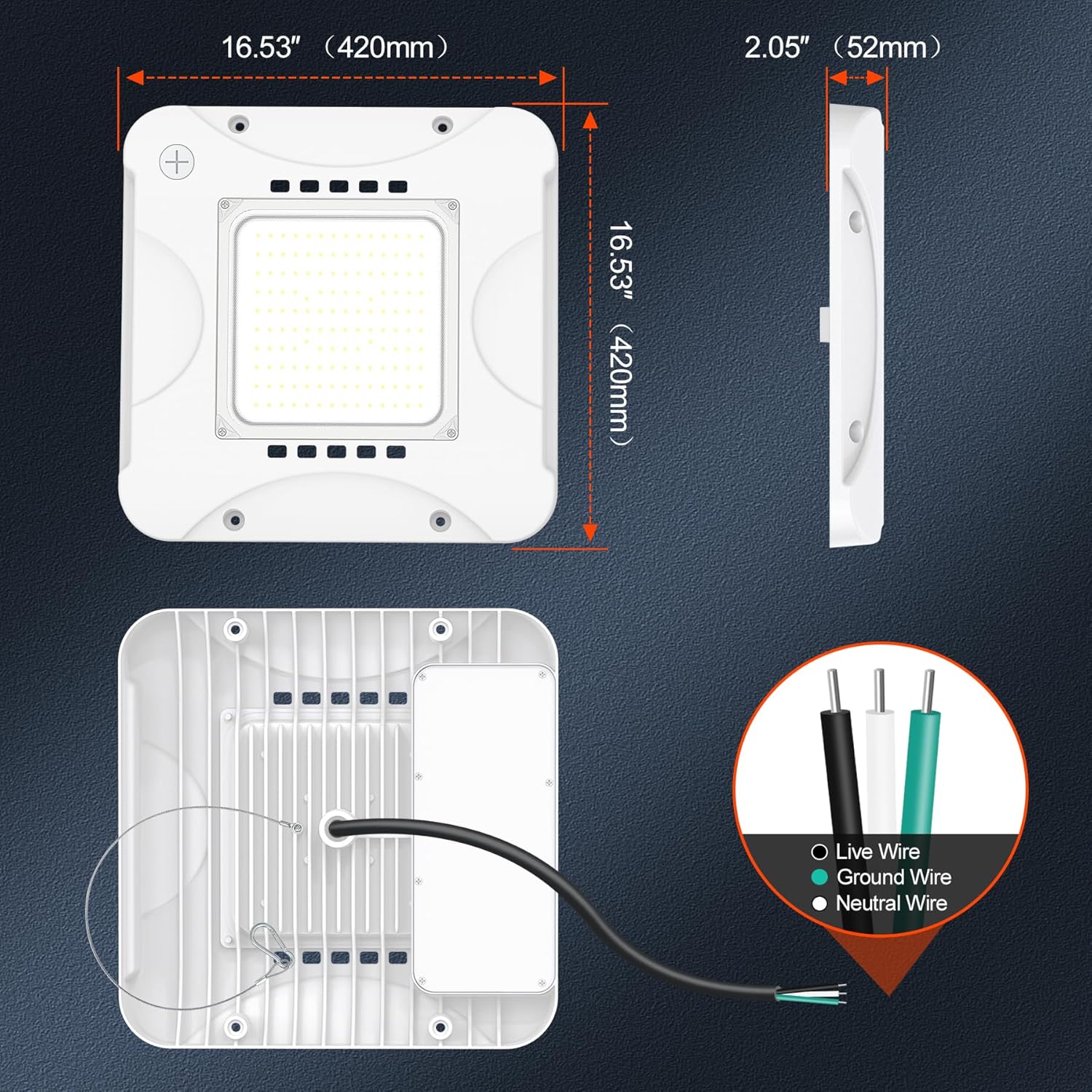 - 【Wide Application】This led canopy light widely used in construction site lighting, plant lighting, industrial lighting, sports centers, carport, garage, gas stations, workshop, parking lots, waiting rooms, railway stations, ports, terminals and other large-scale energy-efficient lighting indoor and outdoor applications
