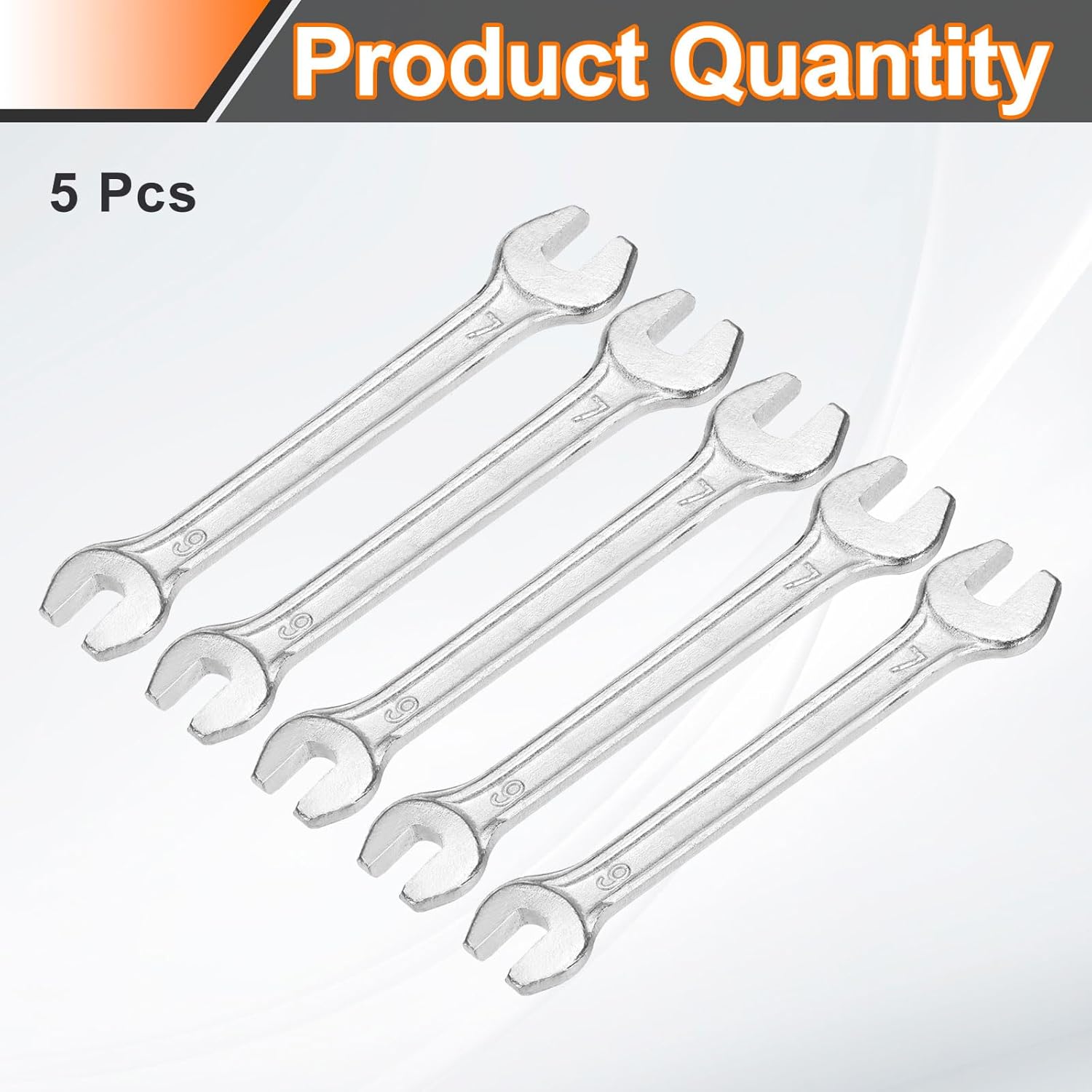 HARFINGTON 5pcs Double Open End Wrench 6mm x 7mm Metric 15 Degree Offset Angle Small Flat Head Wrench Galvanizing Open Ended Spanner for Automotive Repair Furniture Assembly
