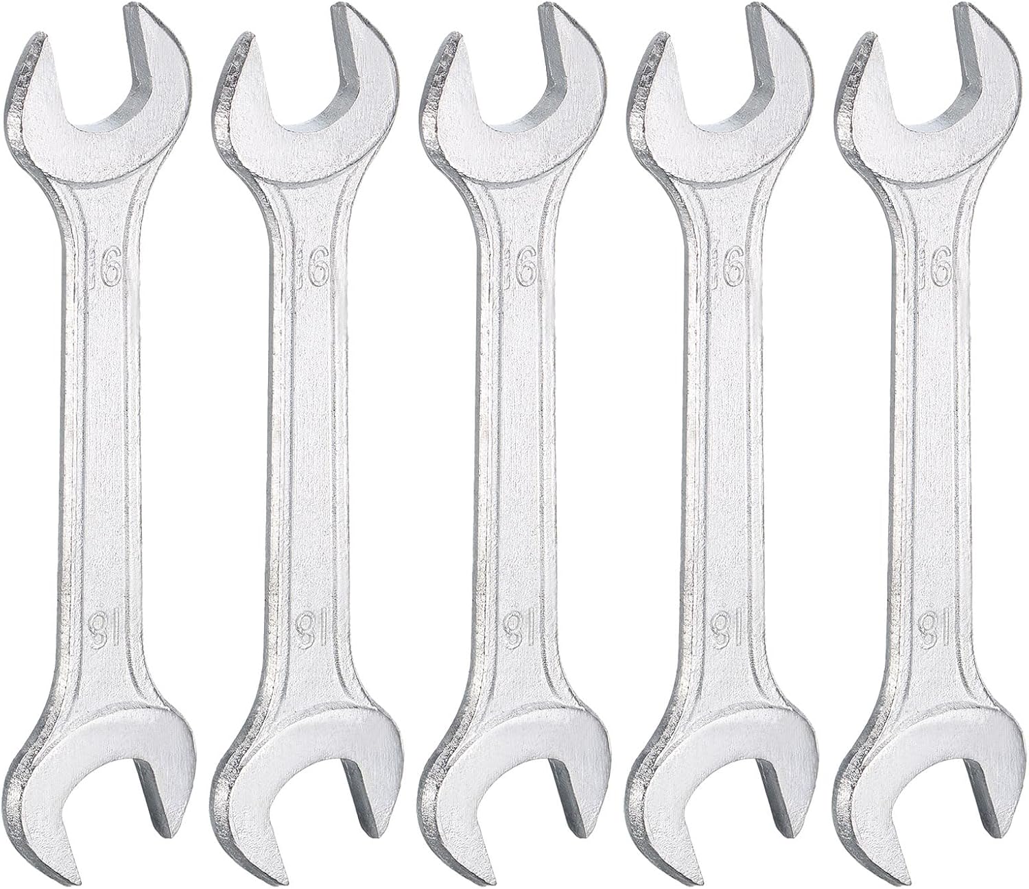 HARFINGTON 5pcs Double Open End Wrench 16mm x 18mm Metric 15 Degree Offset Angle Small Flat Head Wrench Galvanizing Open Ended Spanner for Automotive Repair Furniture Assembly