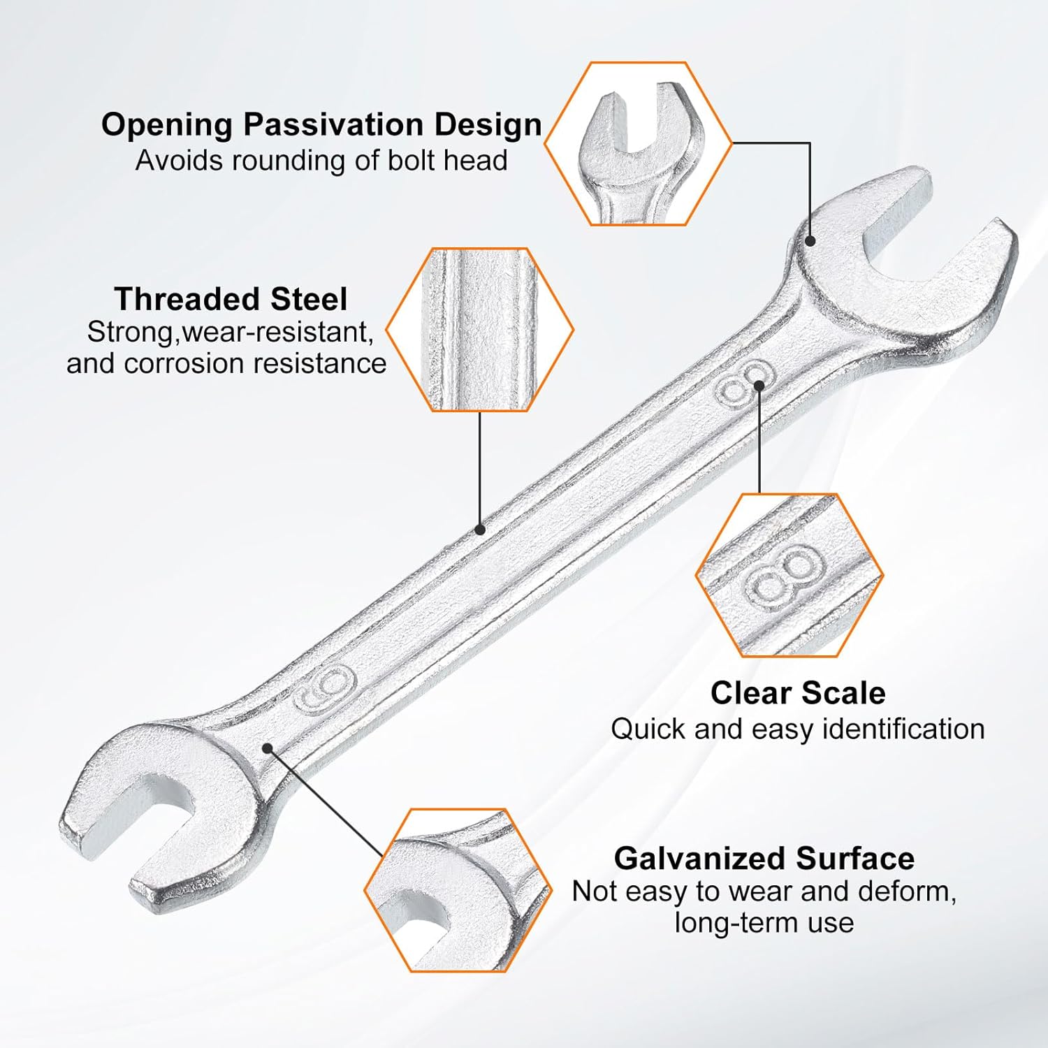 - Size - Metric Open End Size: 6mm x 8mm; Total Length: 110mm / 4.33"; Handle Width: 11mm / 0.43". Handle Thick: 4mm / 0.16". Size stamped on both ends of the handle for quick identification