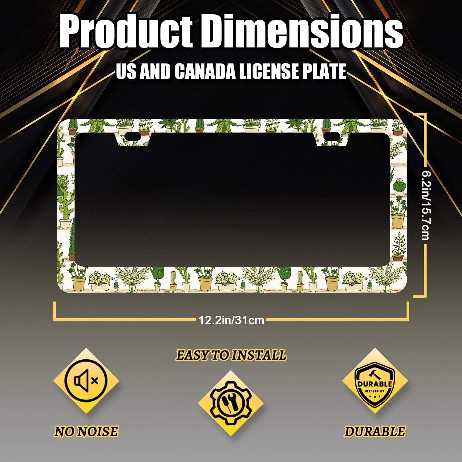 Cute Cactus License Plate Frame Tropical License Plate Holder Stainless Steel Funny Design Compatible with Standard License Plate for USA Canada 12.3" x 6.3" with 2 Screws