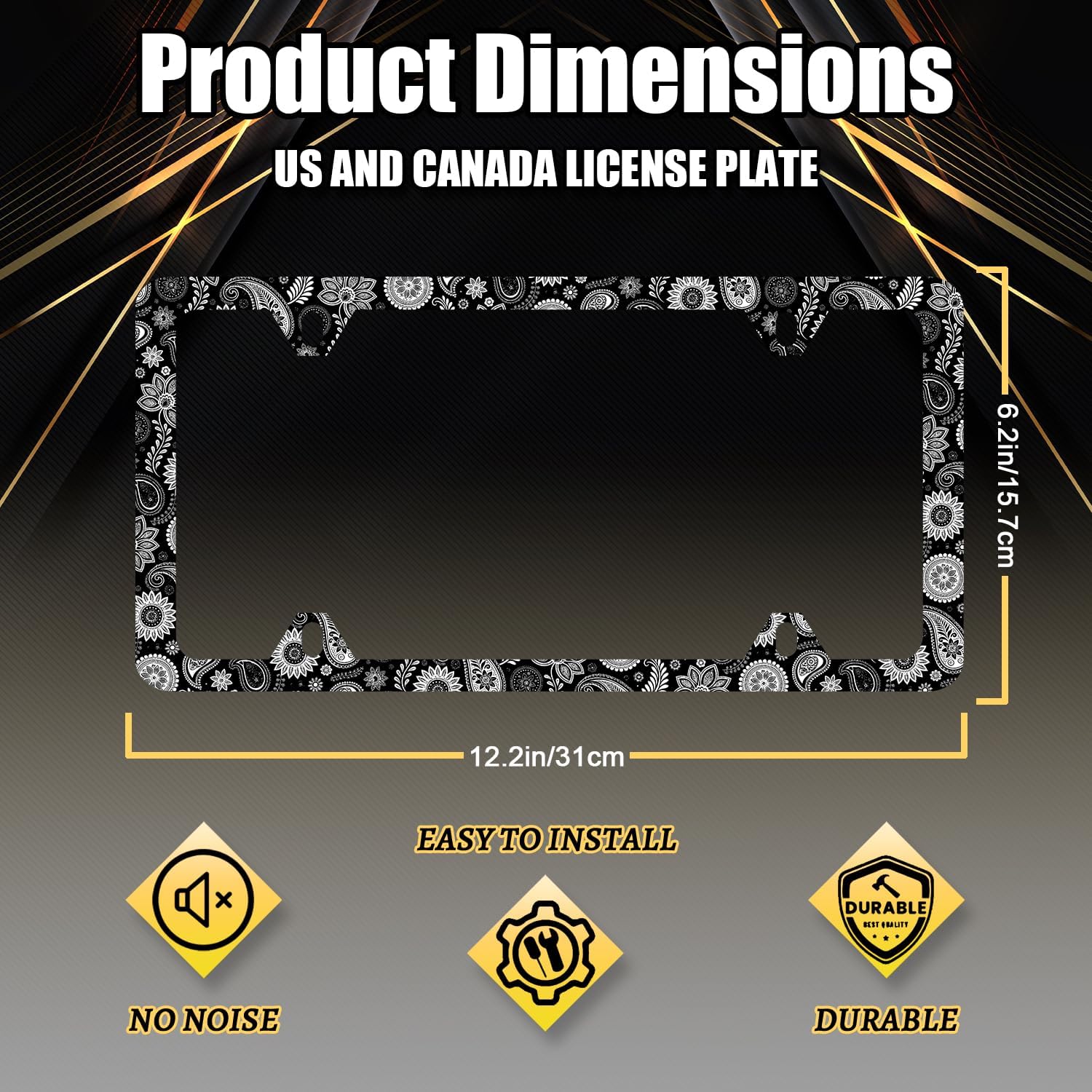 Black and White Paisley License Plate Frame Boho License Plate Holder Stainless Steel Funny Design with 4 Holes and Screws 12.3" x 6.3"