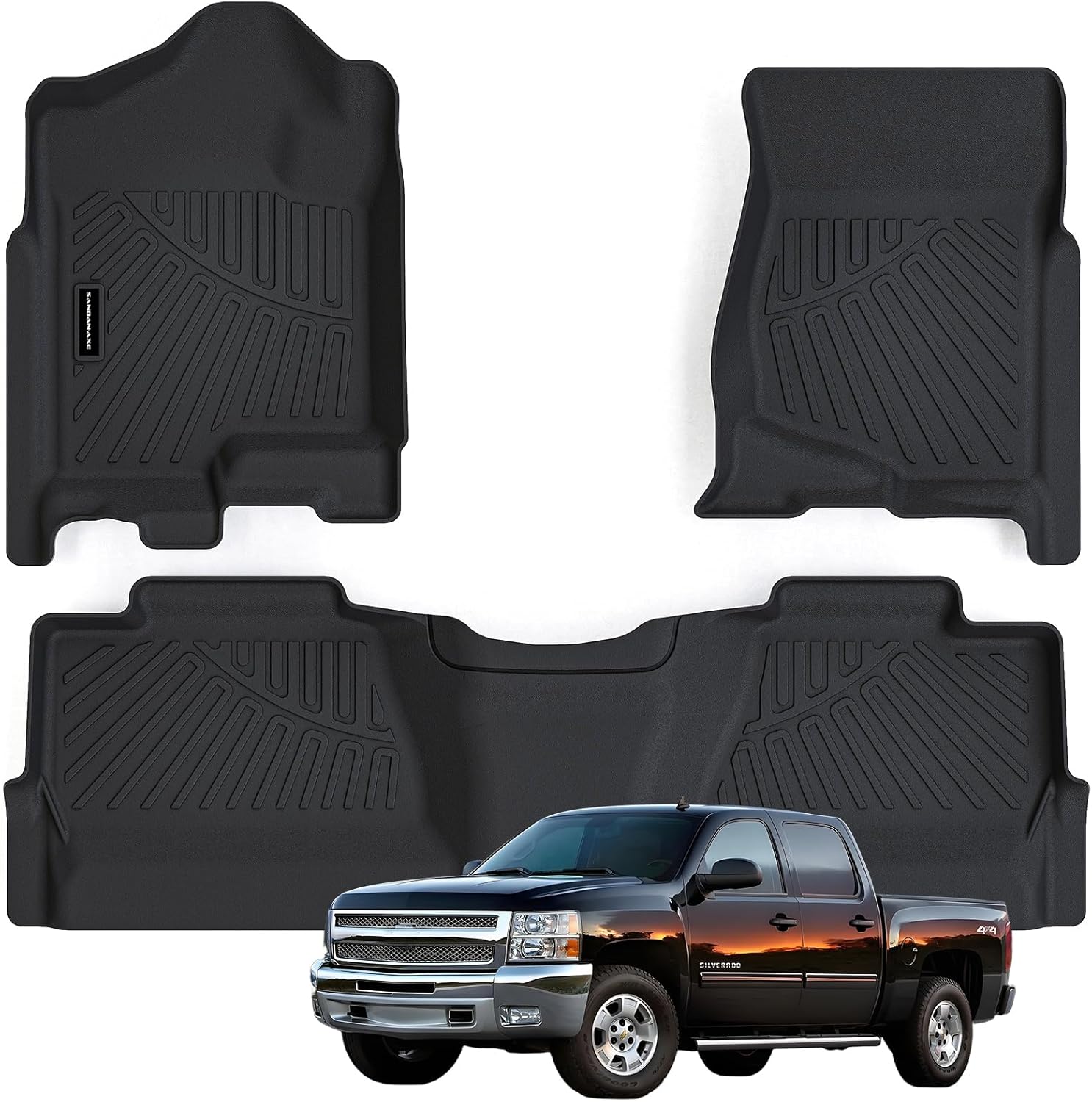- ăđSAFE AND COMFORTABLE MATERIALSă The accessory pad for Chevy Silverado & GMC Sierra 1500 Crew Cab 2007-2013 made of TPE, free of latex and PVC, 100% recyclable, and odorless. SANBAN-AXE mat is both soft and durable. More importantly, they can withstand extreme weather conditions, so you don't have to worry about cracking, curling, or mat damage.