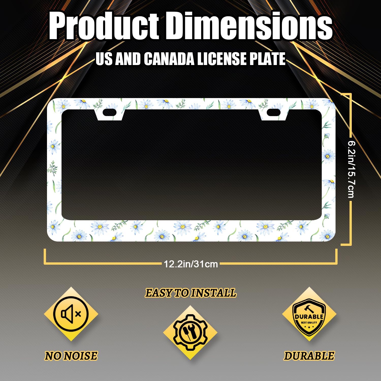 Cute Blue Daisy Flowers License Plate Frame Colorful Floral License Plate Holder Stainless Steel Colorful Car Accessories Decoration 6.3"X12.3" with 2 Holes Screws