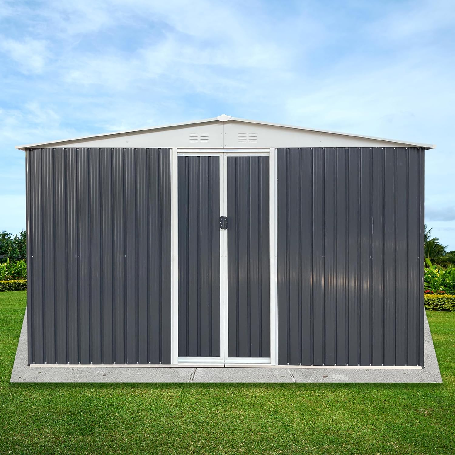 10x12 FT Outdoor Storage Shed, Large Metal Garden Shed with 4 Windows, Outside Tool Shed with Lockable Sliding Doors, Waterproof Storage Building with 4 Air Vents for Backyard, Patio, Lawn, Gray