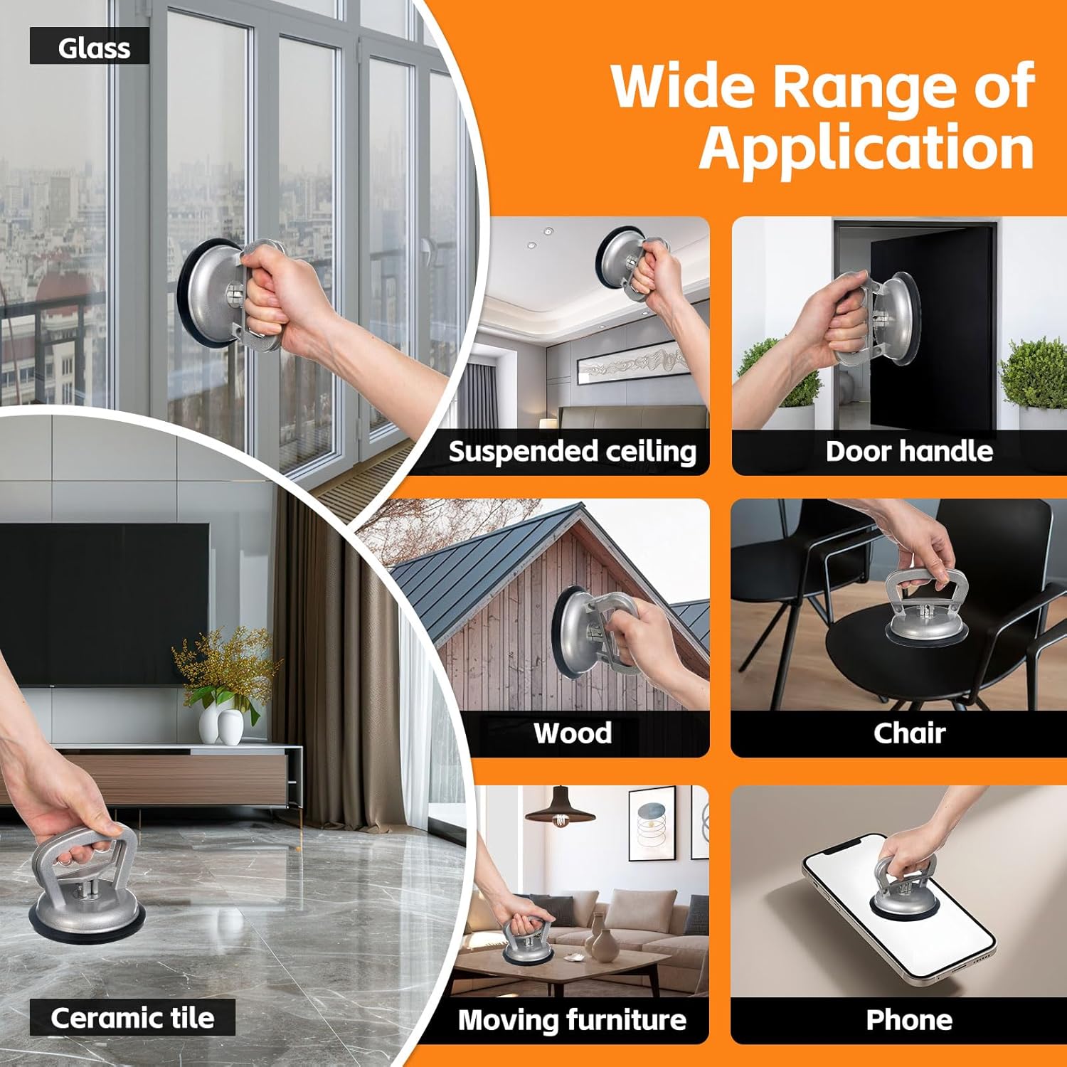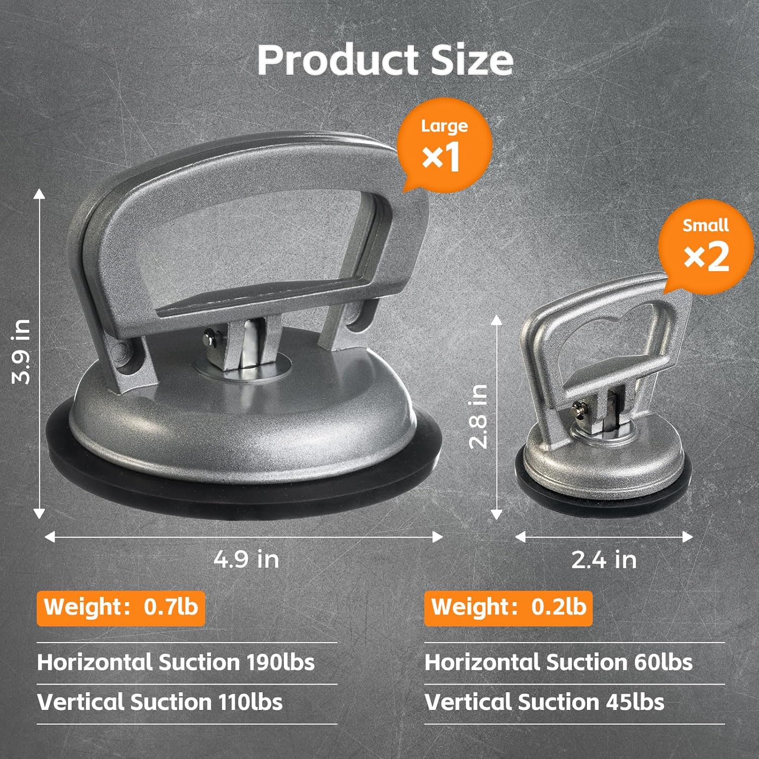 - Versatile Dent Removal Kit: Our dent repair kit comes with one large car dent puller (4.9 inches) and two small car dent removal (2.4 inches). It’s a multifunctional suction cup that can lift up glass, tiles, steel, furniture and other smooth objects and it also can be used to remove the screen or used as a phone holder to watch videos.