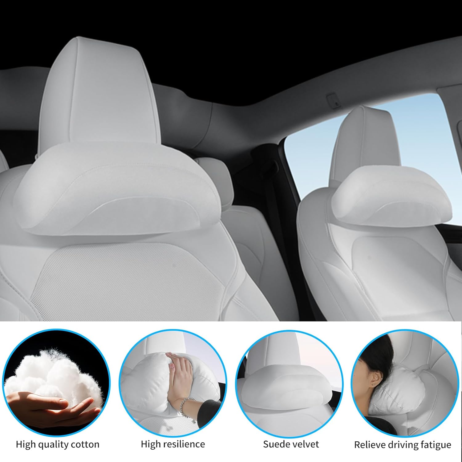 Car Headrest Pillow for Driving, Softness Ergonomic Design Universal Travel Neck Pillow for Most Cars, Office Chairs, Gaming Chairs with Extra Filler Cotton Bag (White, 2PC)