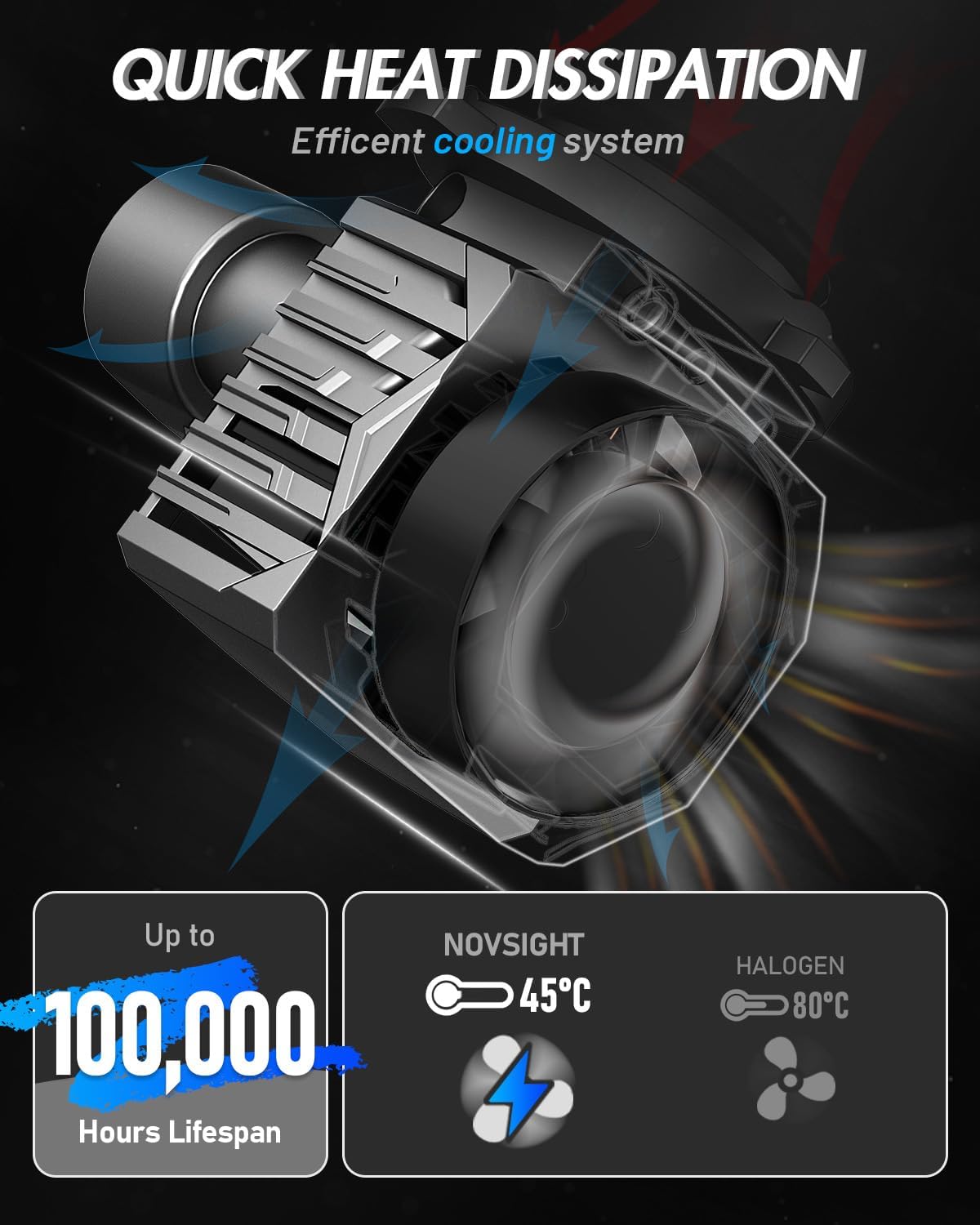 - ăEfficient Heat DissipationăEquipped with an advanced heat - dissipation system. It operates at a significantly lower temperature than traditional halogen bulbs. This excellent heat - dissipation performance dramatically extends the bulb's lifespan to 100,000 hours. It reduces the hassle and cost of frequent replacements