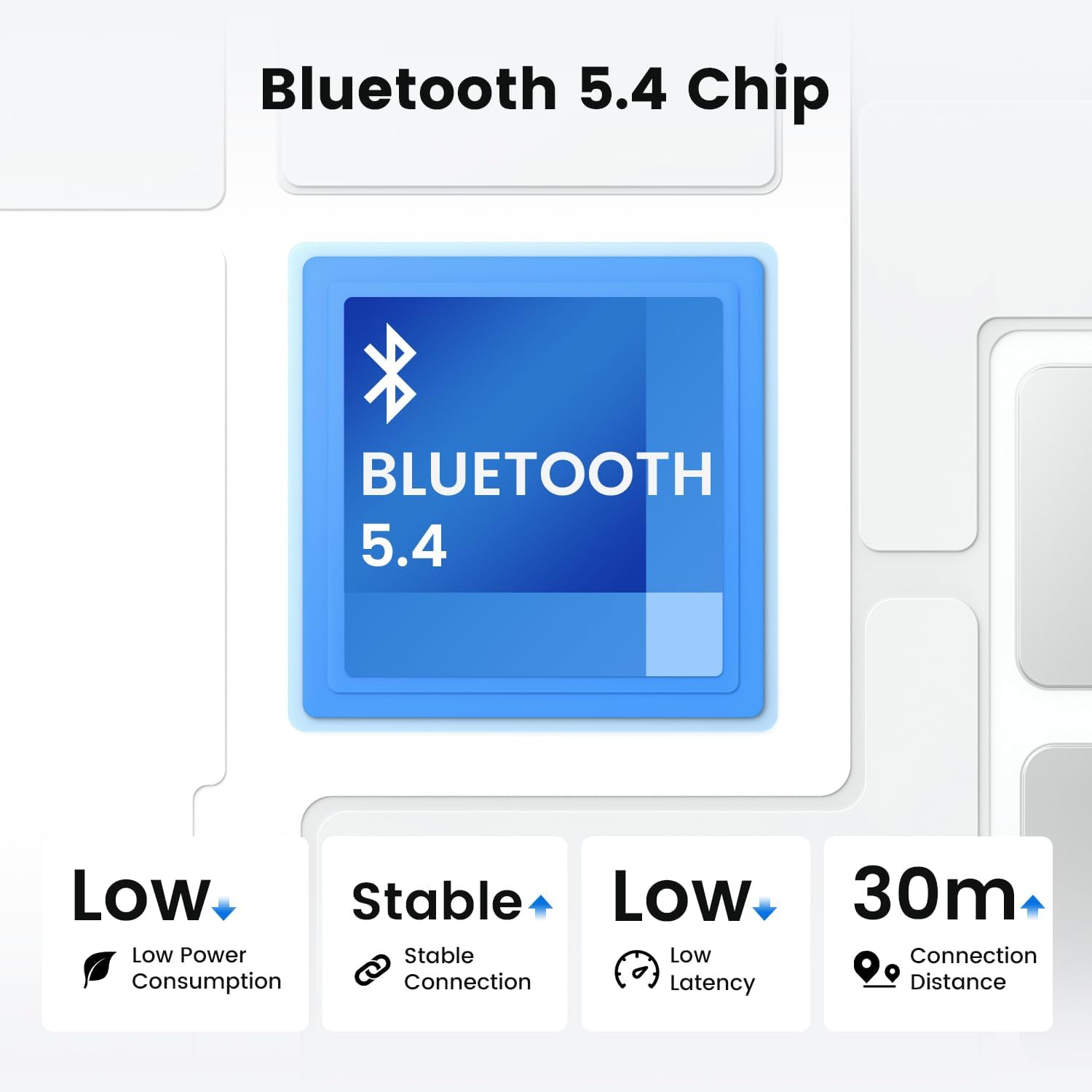 - Bluetooth 5.4 with Dual Device Connection: Equipped with the latest Bluetooth 5.4 chip, this headset with mic delivers faster pairing, stronger signal stability, and improved resistance to interference. With an extended wireless range of up to 30 meters (98 feet), you can move freely without dropping the connection. Easily connect and switch between two devices like PC and phone—ideal for driving, call centers, Zoom meetings, and remote work.