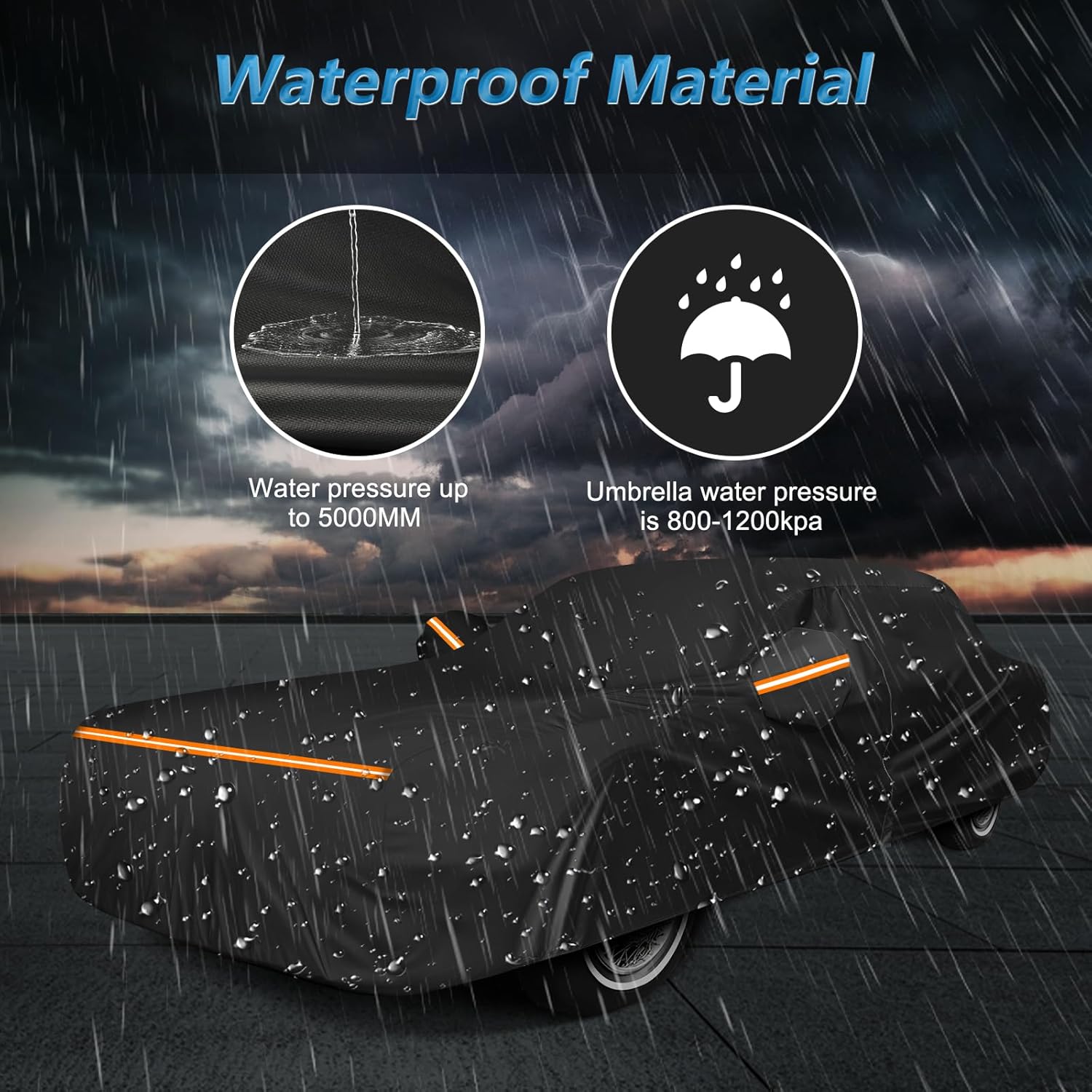 - ăAll-Weather ProtectionăMade black 210D Oxford cloth and cotton and PU waterproof fabric as material, ensuring its quality is tough, durable, and safe in strong wind conditions. Suitable for all weather and seasons. Protects your vehicle and paint from rain, snow, sun, bird droppings, pollen, dust/dirt - suitable for all seasons (spring, summer, fall, winter).