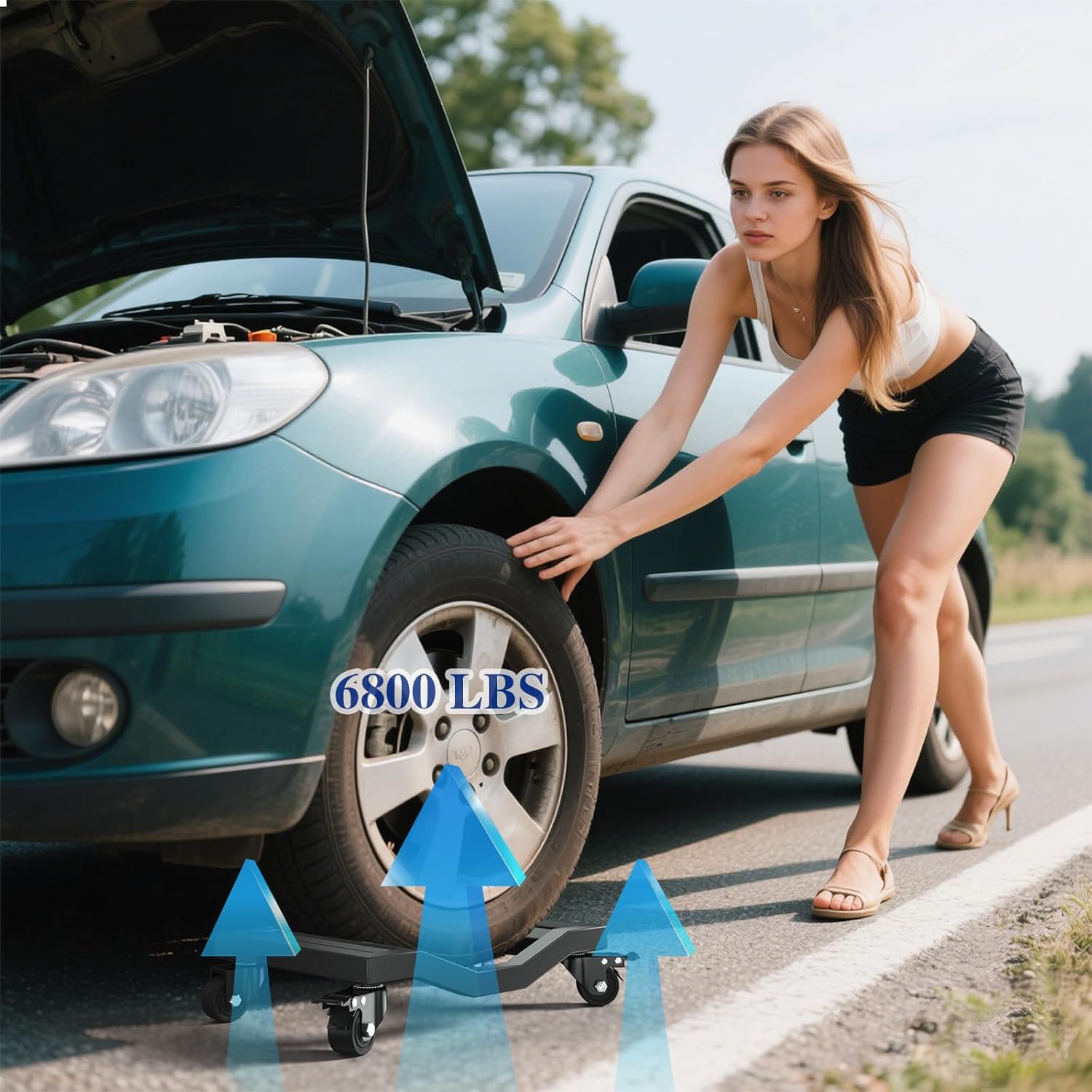 - 【Patented Innovation & Unrivaled Reliability】Our Car Wheel Dolly set is protected by US Patent #US-29998128, featuring a heavy-duty reinforced stainless steel construction for exceptional strength. Engineered to effortlessly support up to 6,800 lbs, it resists deformation and damage, delivering long-lasting durability and worry-free performance for your toughest jobs.